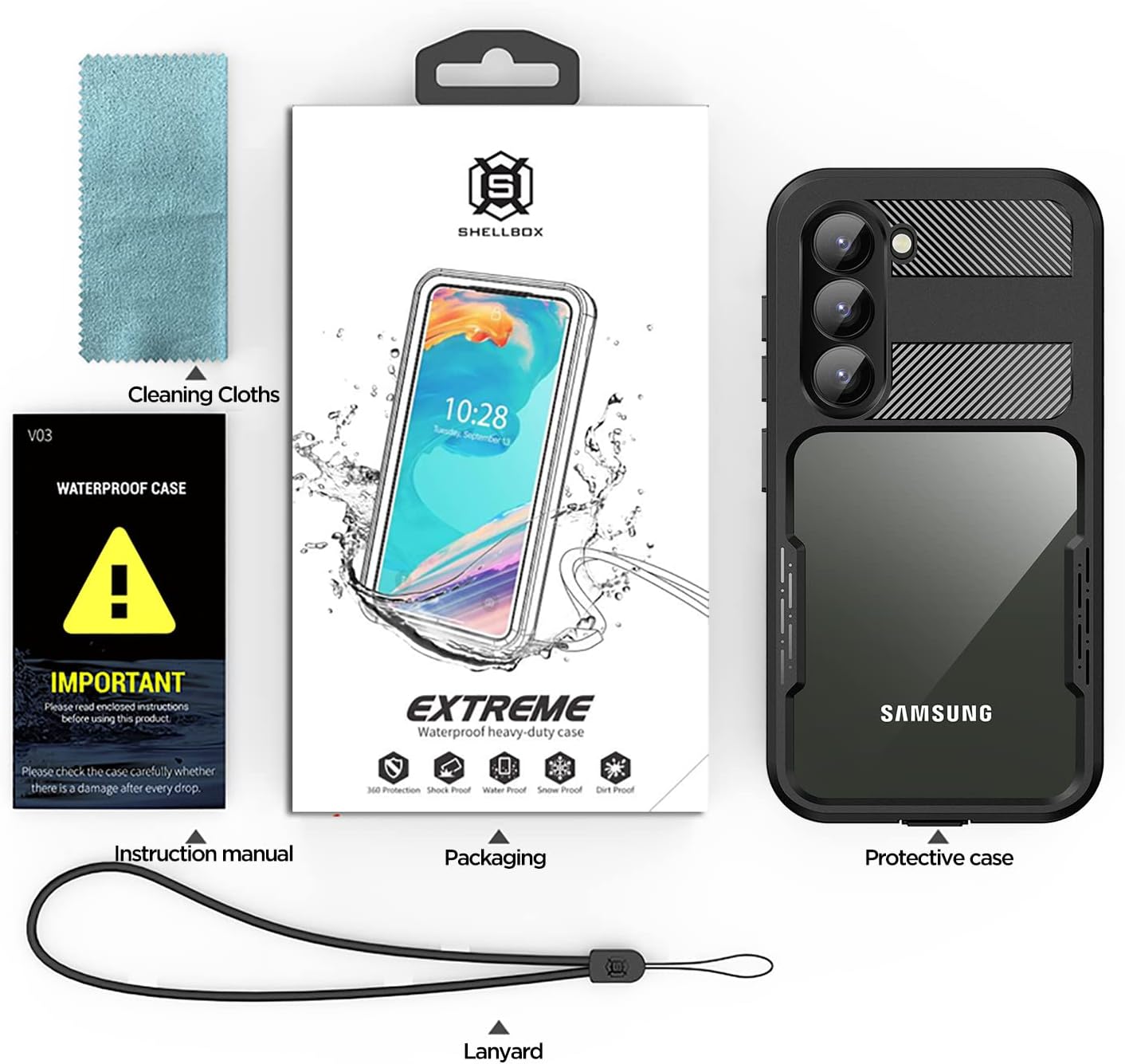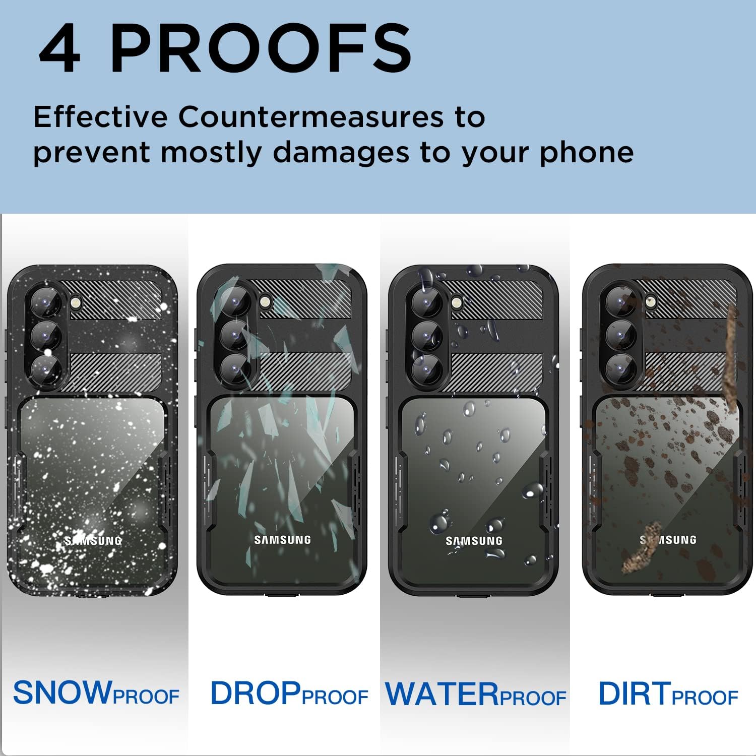 - 【IP68 Certified Waterproof】Underwater full sealed IP68 Certified Samsung Galaxy S23 waterproof case, designed and tested to submersible to 6.6-10ft/2-3m for 30 minutes, and it Can take pictures underwater.