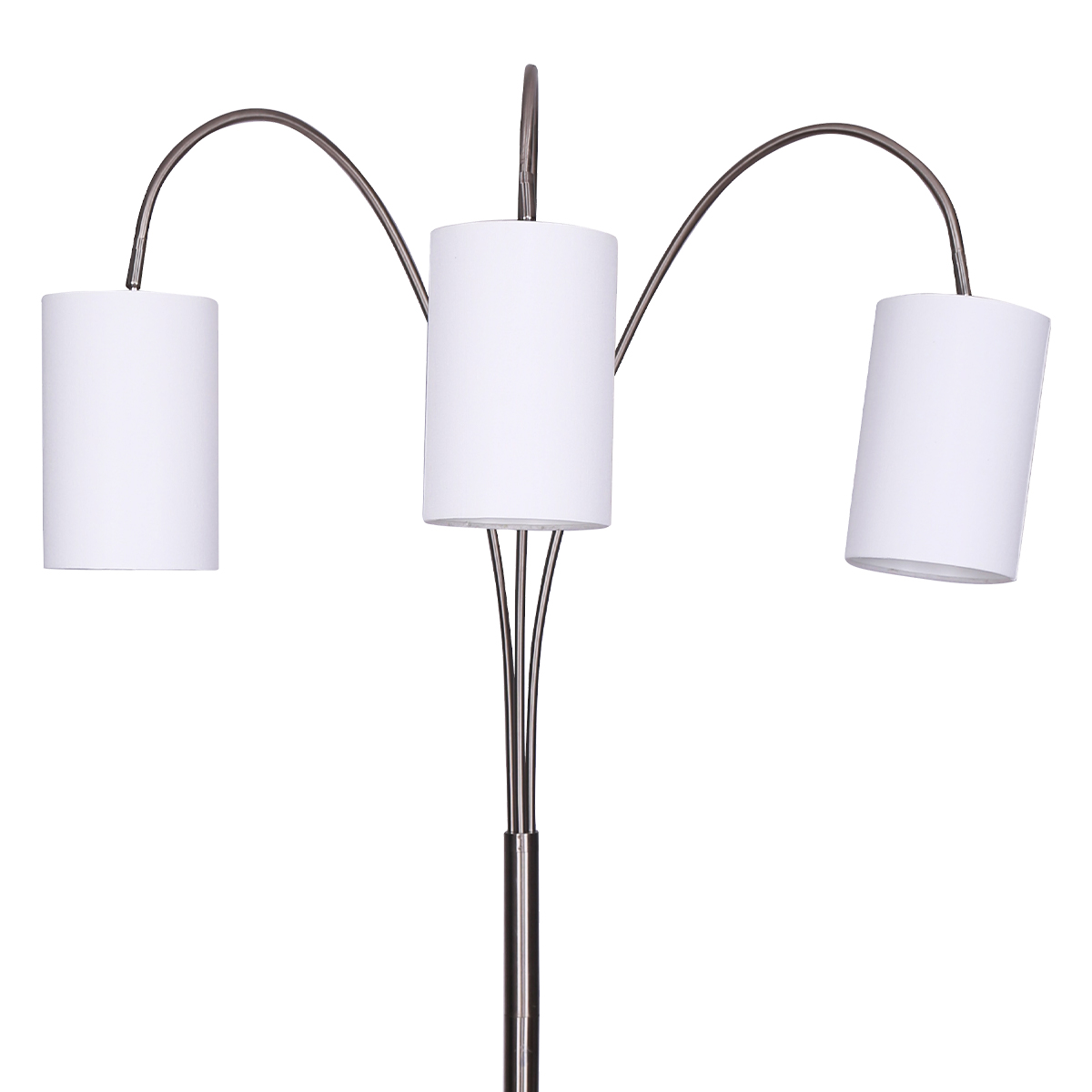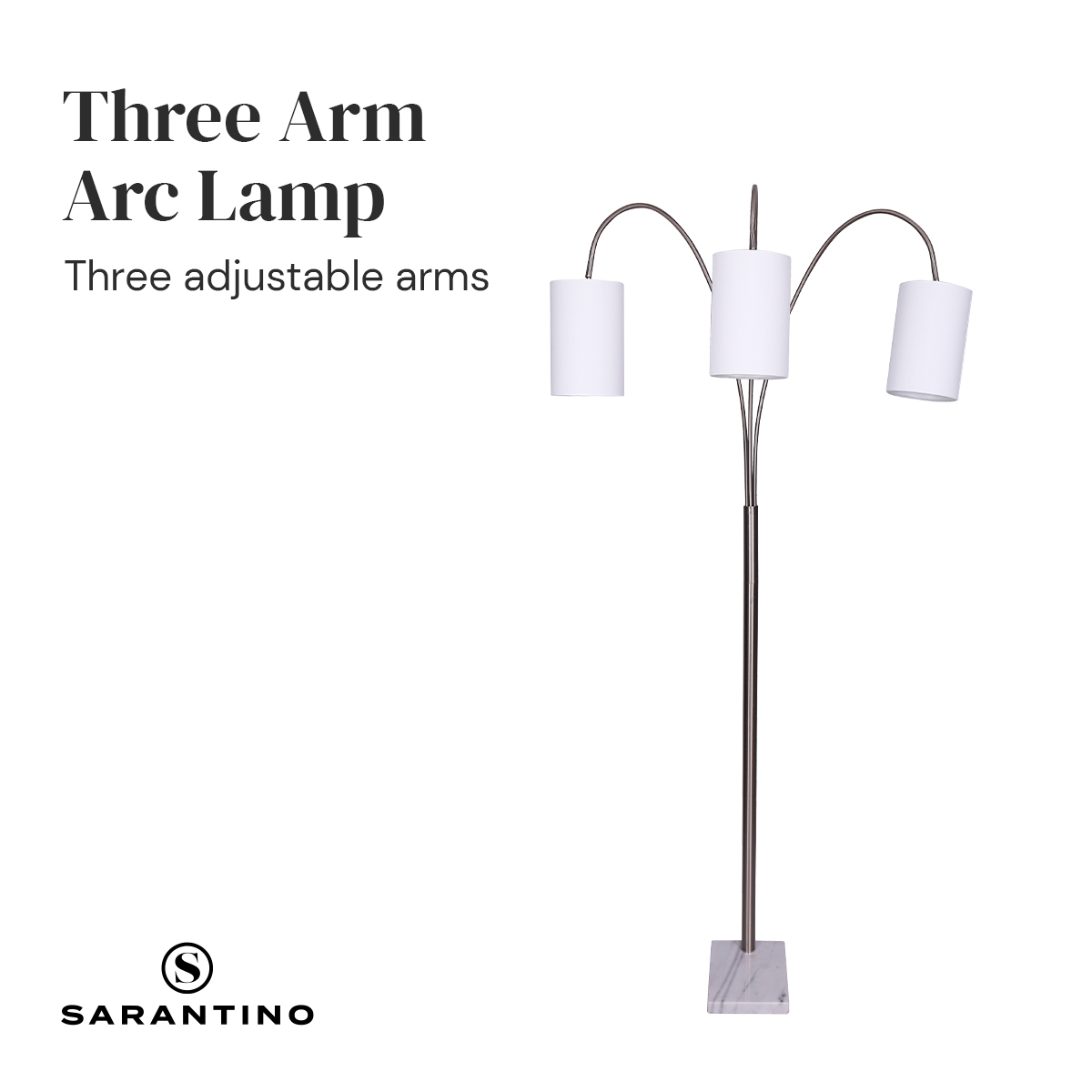 A smart and stylish way to light up a seating area, this 3-arm arc lamp provides overhead lighting that can be controlled with three adjustable shade arms. Aside from functional assets, a brushed steel finish is paired with a white marble base to display striking style.