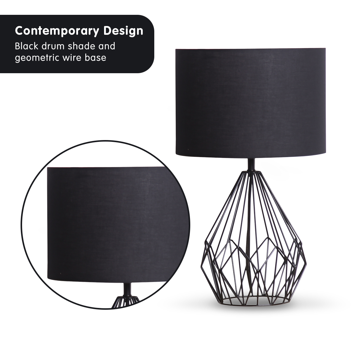 Sarantino Metal Wire Table Lamp in Black Finish With Black Drum Shade