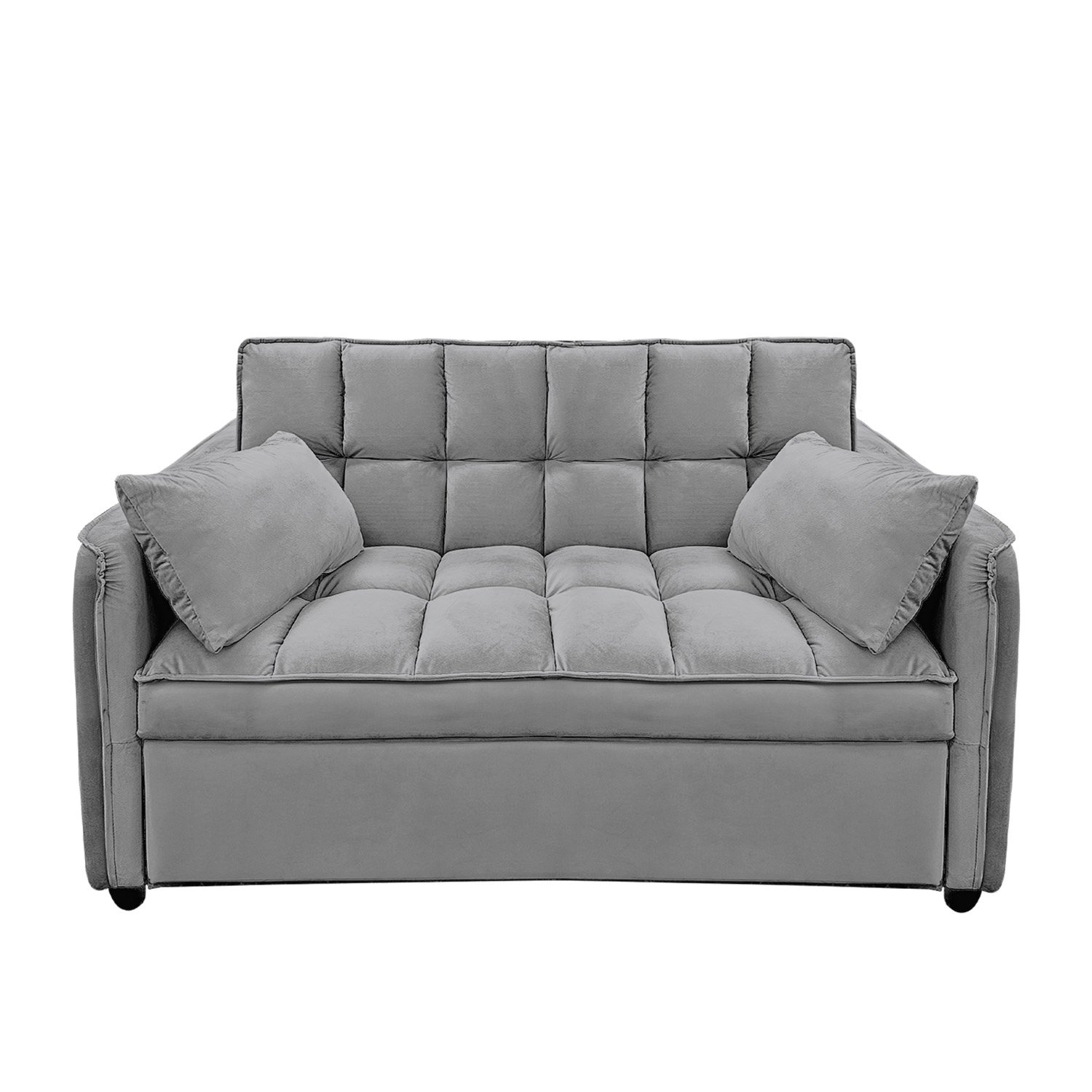 Sarantino Quincy 2-Seater Velvet Sofa Bed in Dark Grey with Wooden Frame and Tufted Design