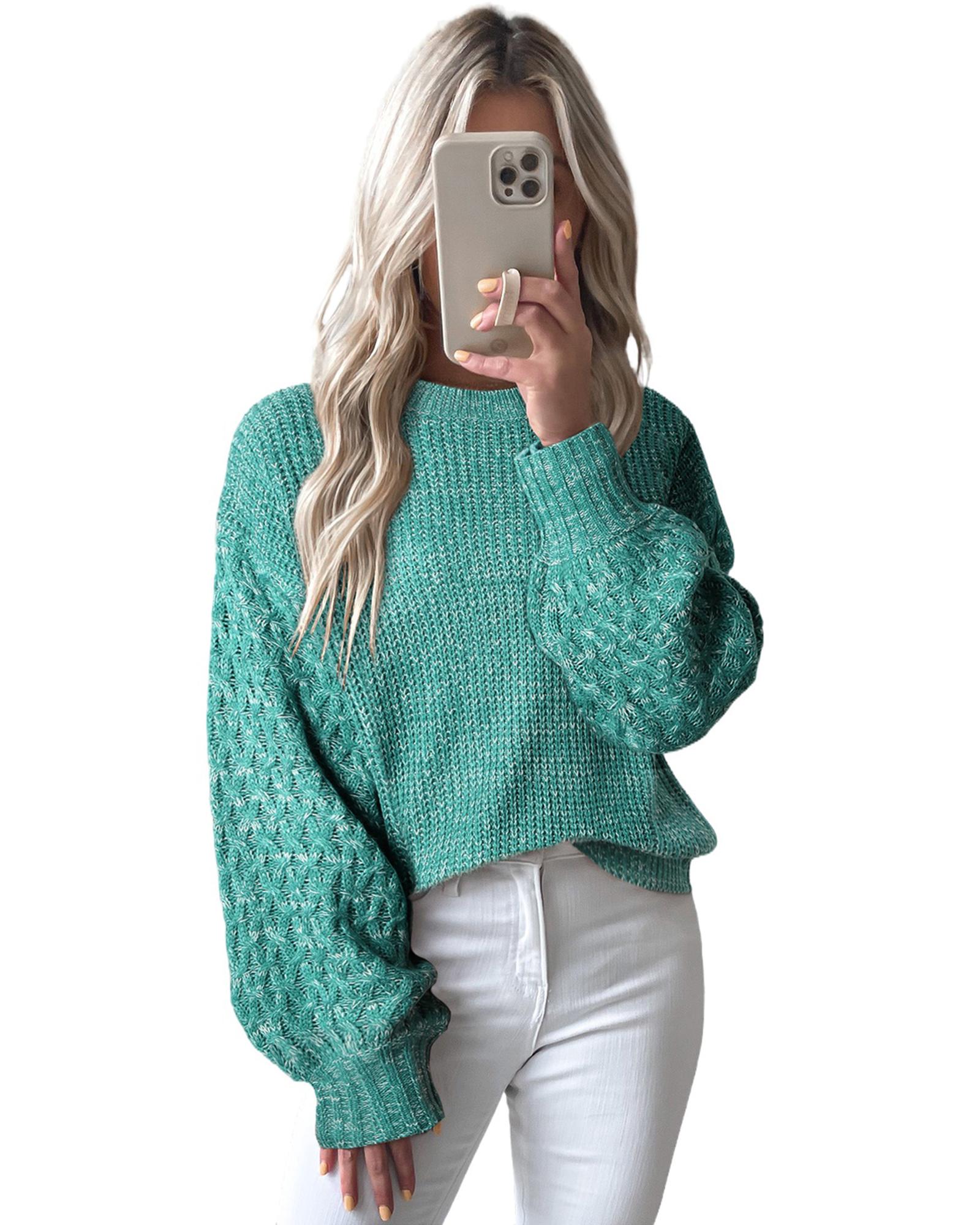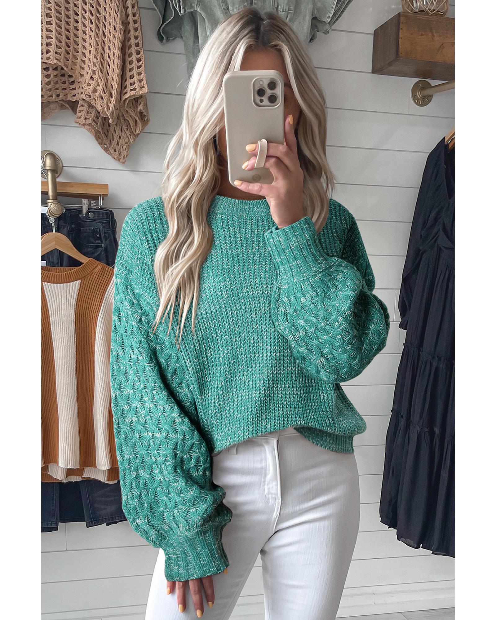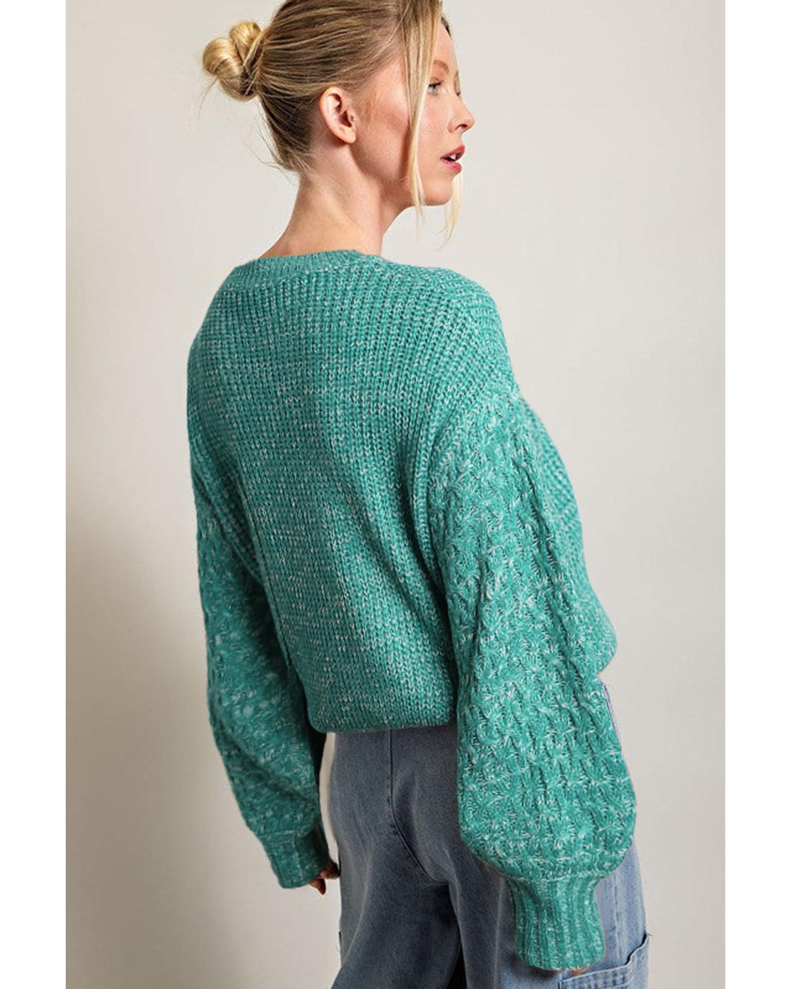 Sea Green Cable Knit Sleeve Drop Shoulder Sweater – XL