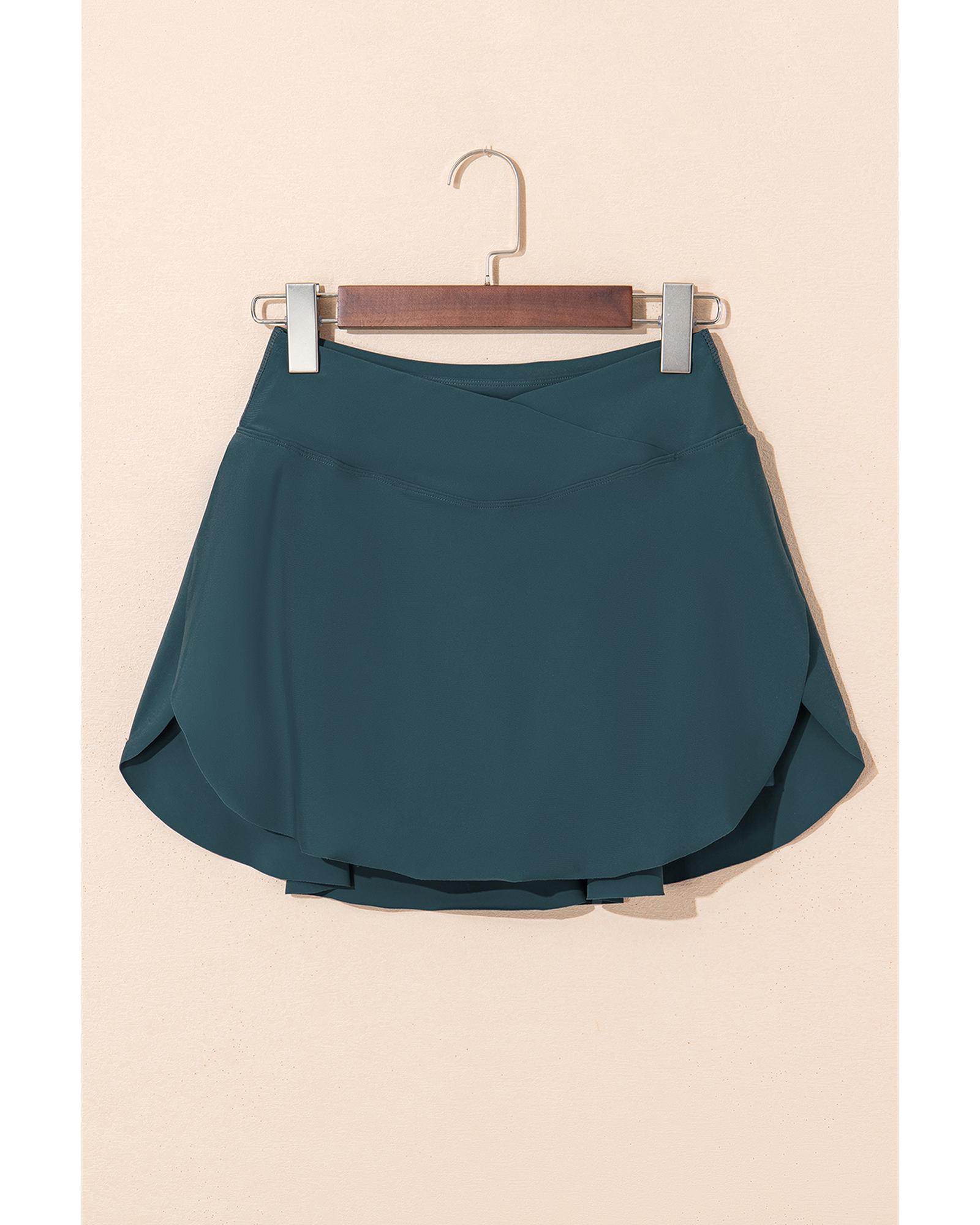 Sea Green Solid Pocketed Crossover High Waist Swim Skort - XL
