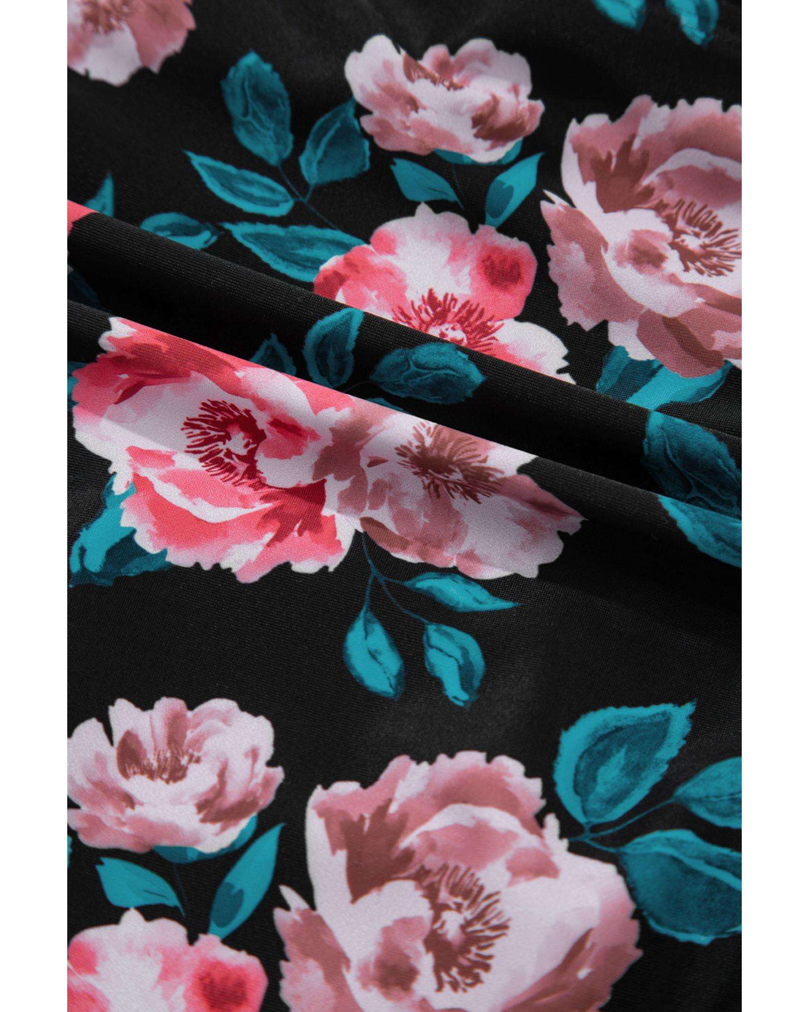 Sea Green Solid Ruffled Square Neck Swim Top and Floral Shorts Bikini Set – M