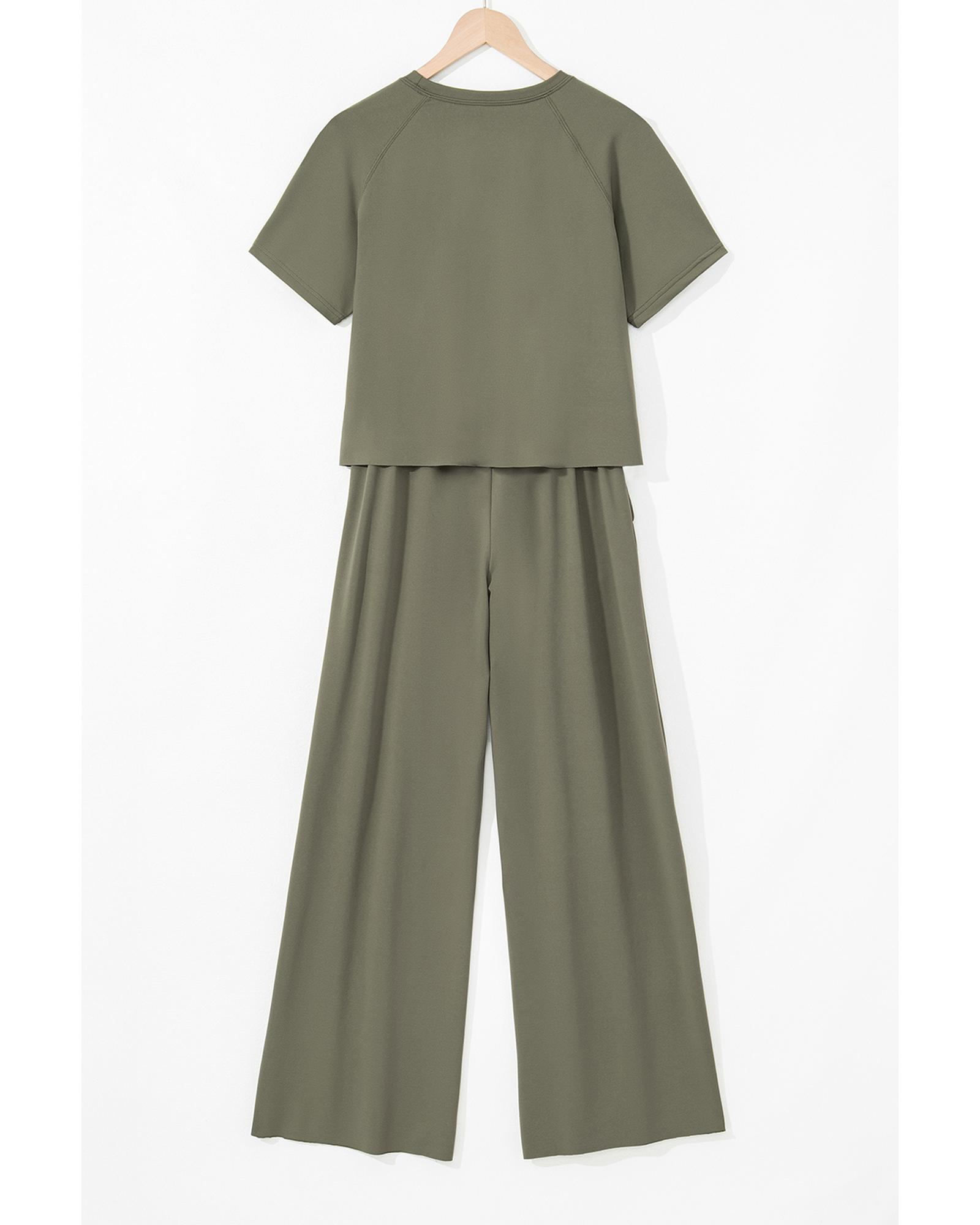 Seagrass Raw Hem Loose Tee and Wide Leg Pants Set – XL