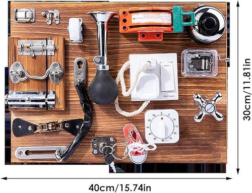 ?FUNCTIONAL ACTIVITY BOARD: Our learning toys are equipped with a latch lock, shape matching, and wooden beads to practice using locks that look like real latches and buckles