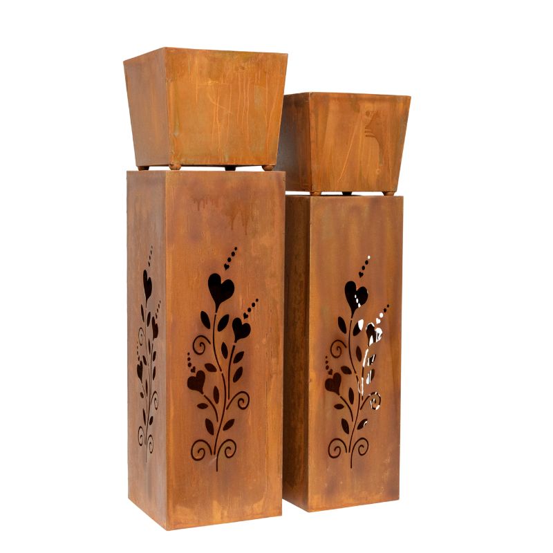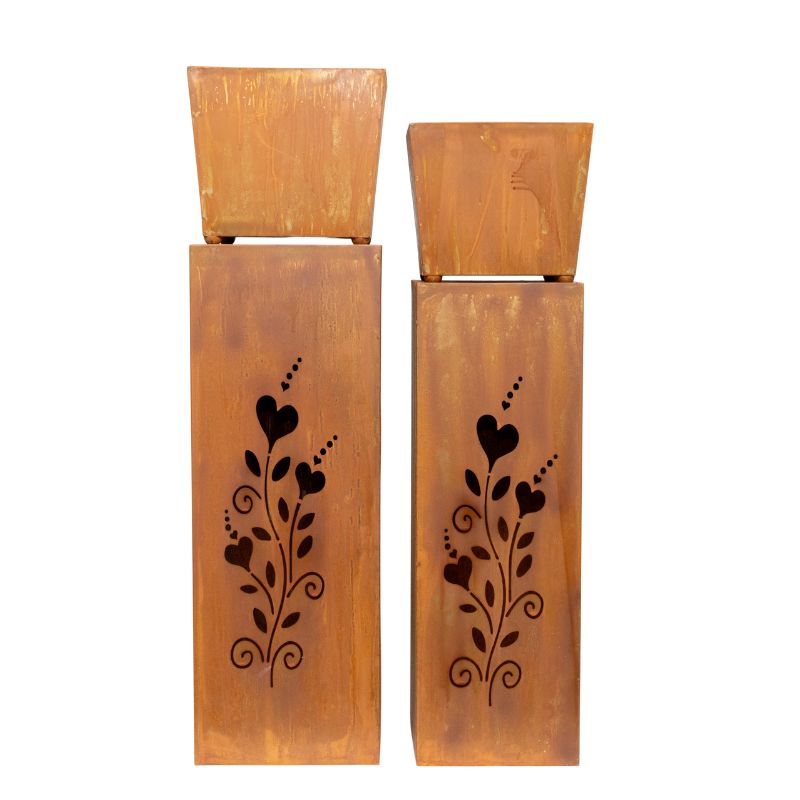Set 2 Nested Square Pillar Rust ‘Hearts’ Panters 93cm, 86cm
