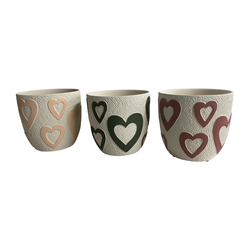 Set 3 Assorted Colour Heart Planters w Hole + Plug 13cm