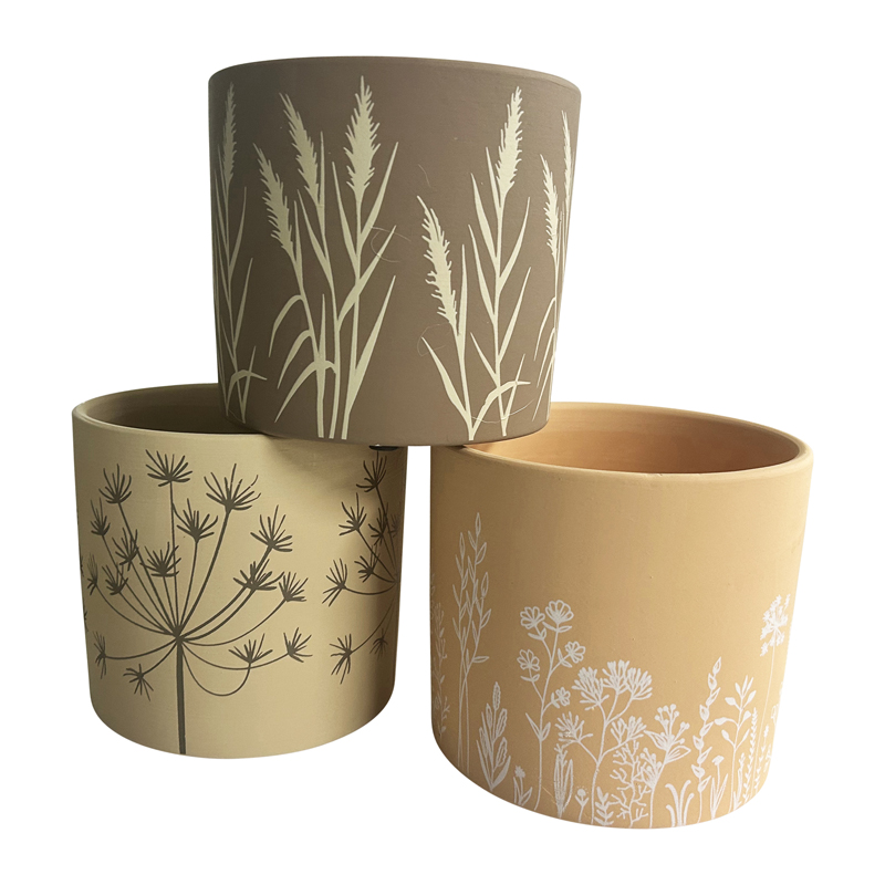 Set 3 Asst Flowergrass Design Planters w Hole + Plug 17cm