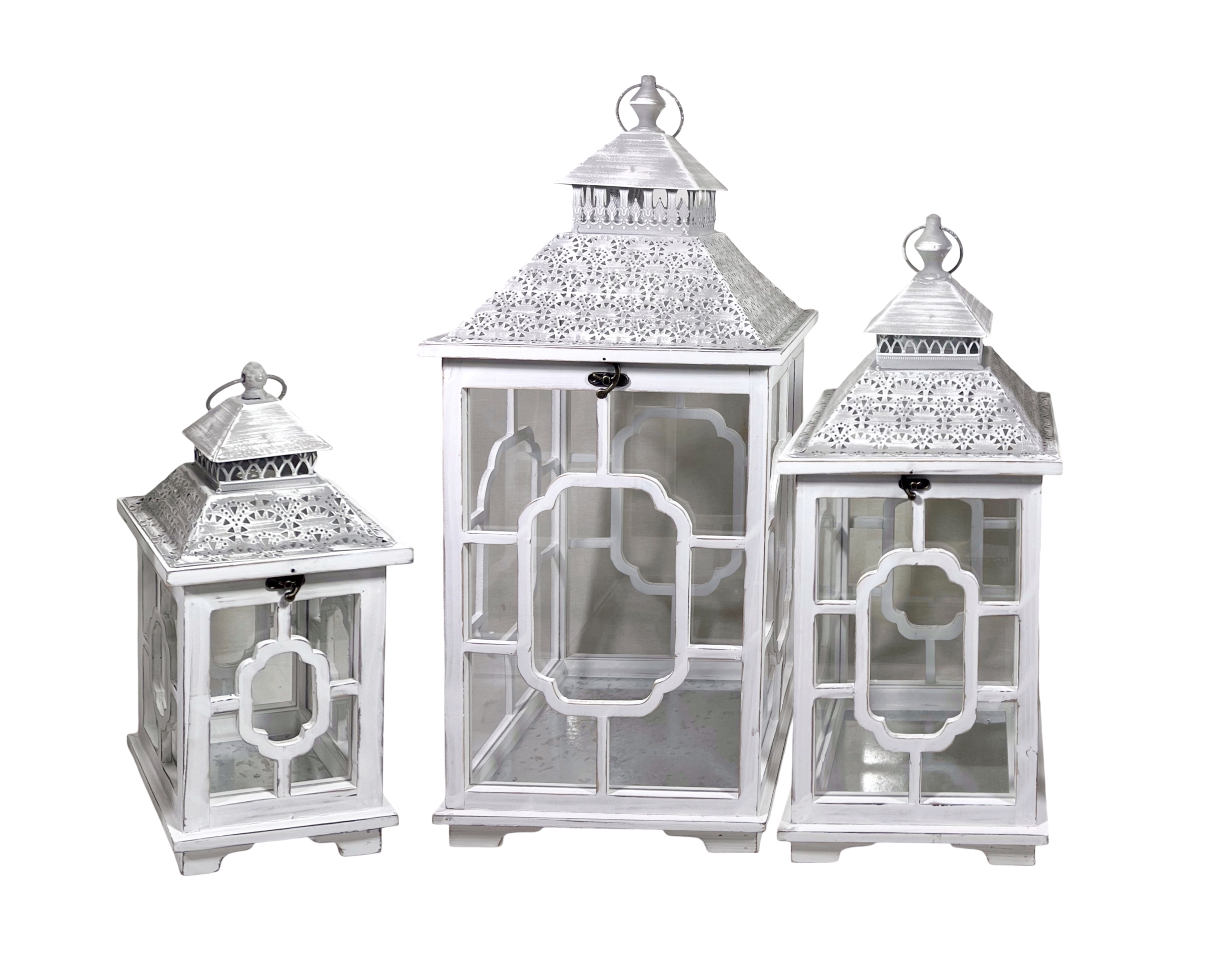 Set 3 Wooden Lantern w Metal Roof 76cm