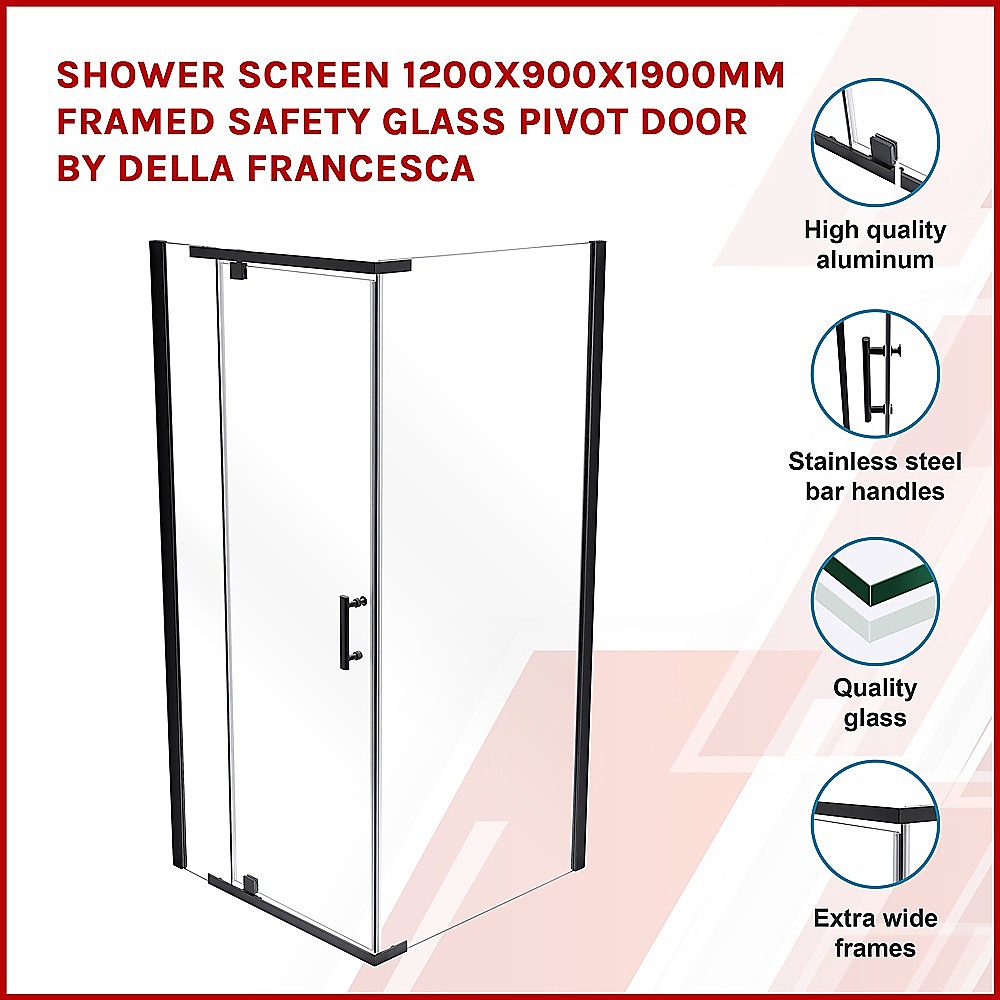 Shower Screen 1200x900x1900mm Framed Safety Glass Pivot Door By Della Francesca