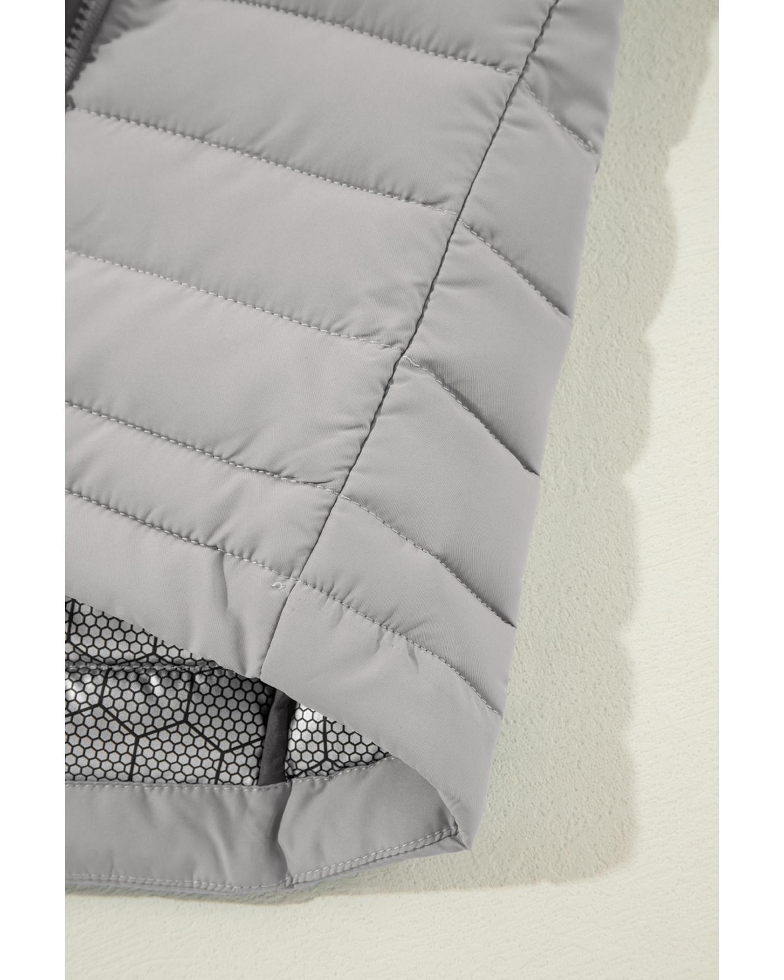 Silvery Plush Collared Quilted Zipped Puffer Vest – L