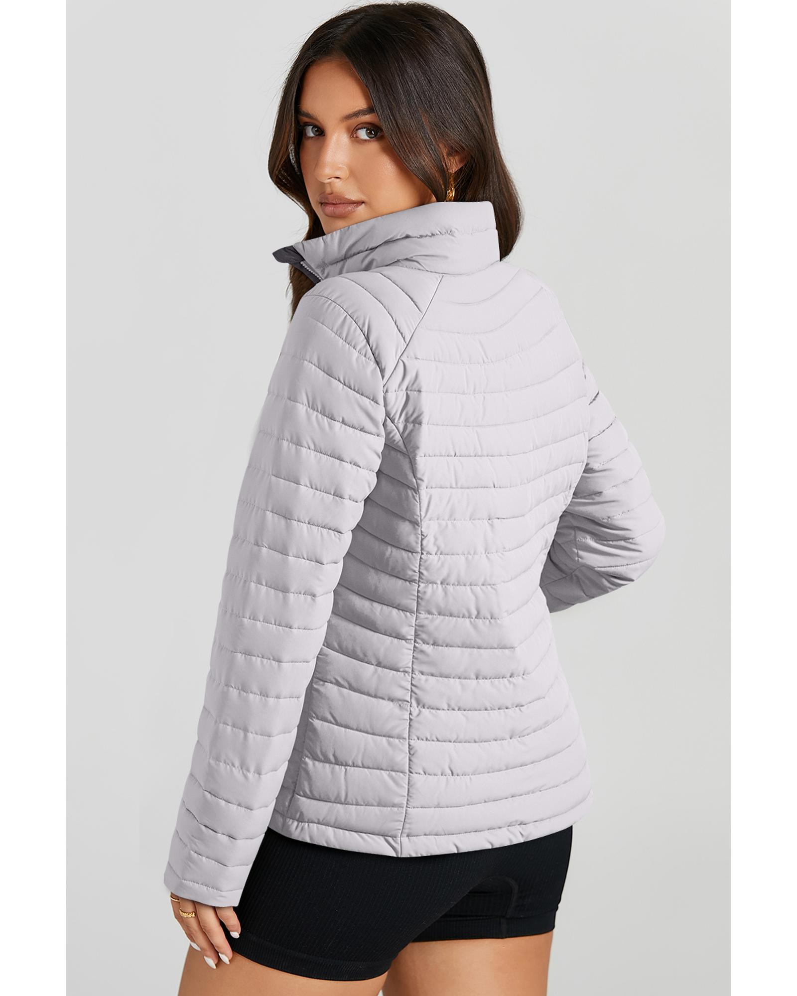 Silvery Solid Color Quilted Zip-up Puffer Jacket – 2XL
