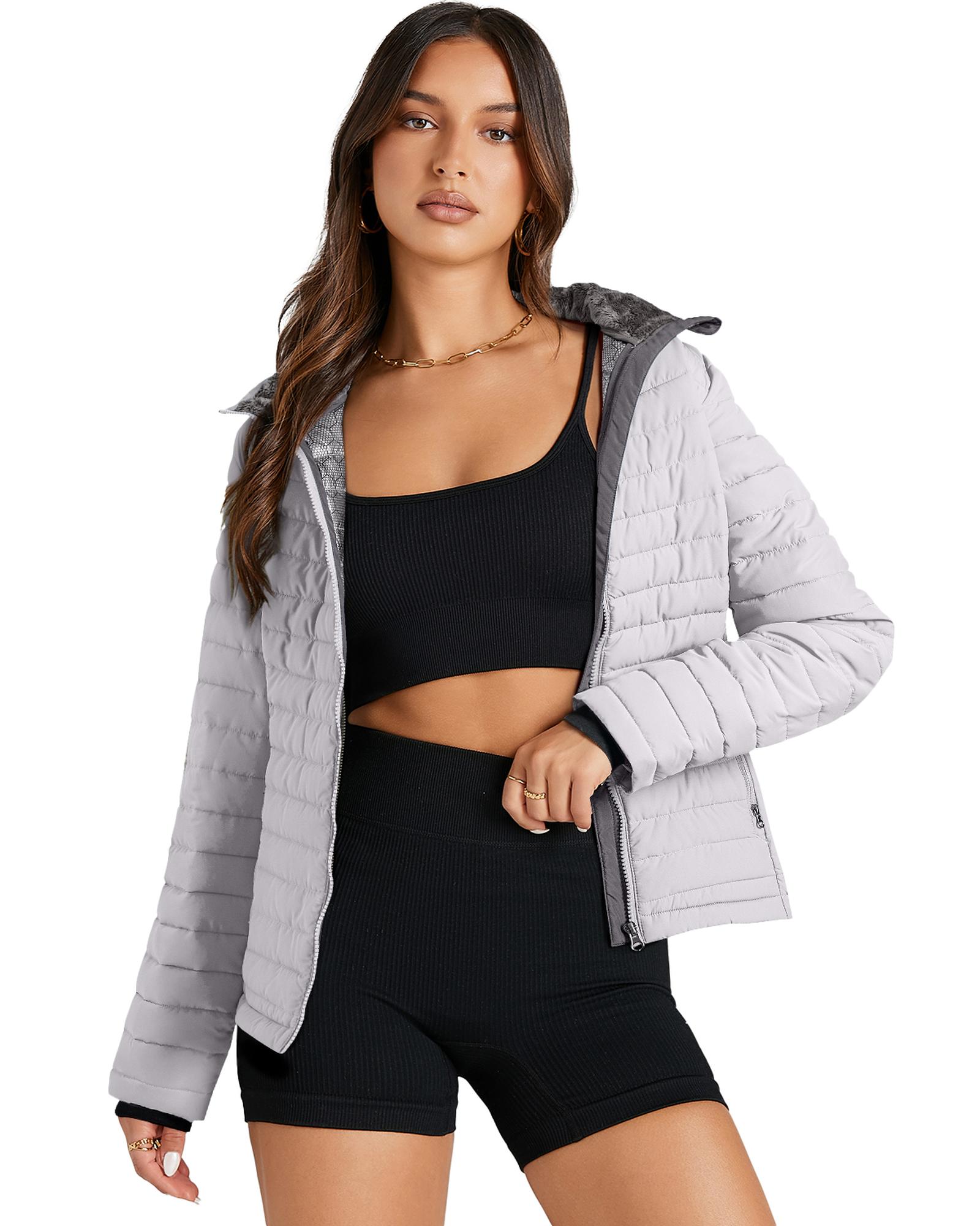 Silvery Solid Color Quilted Zip-up Puffer Jacket – XL