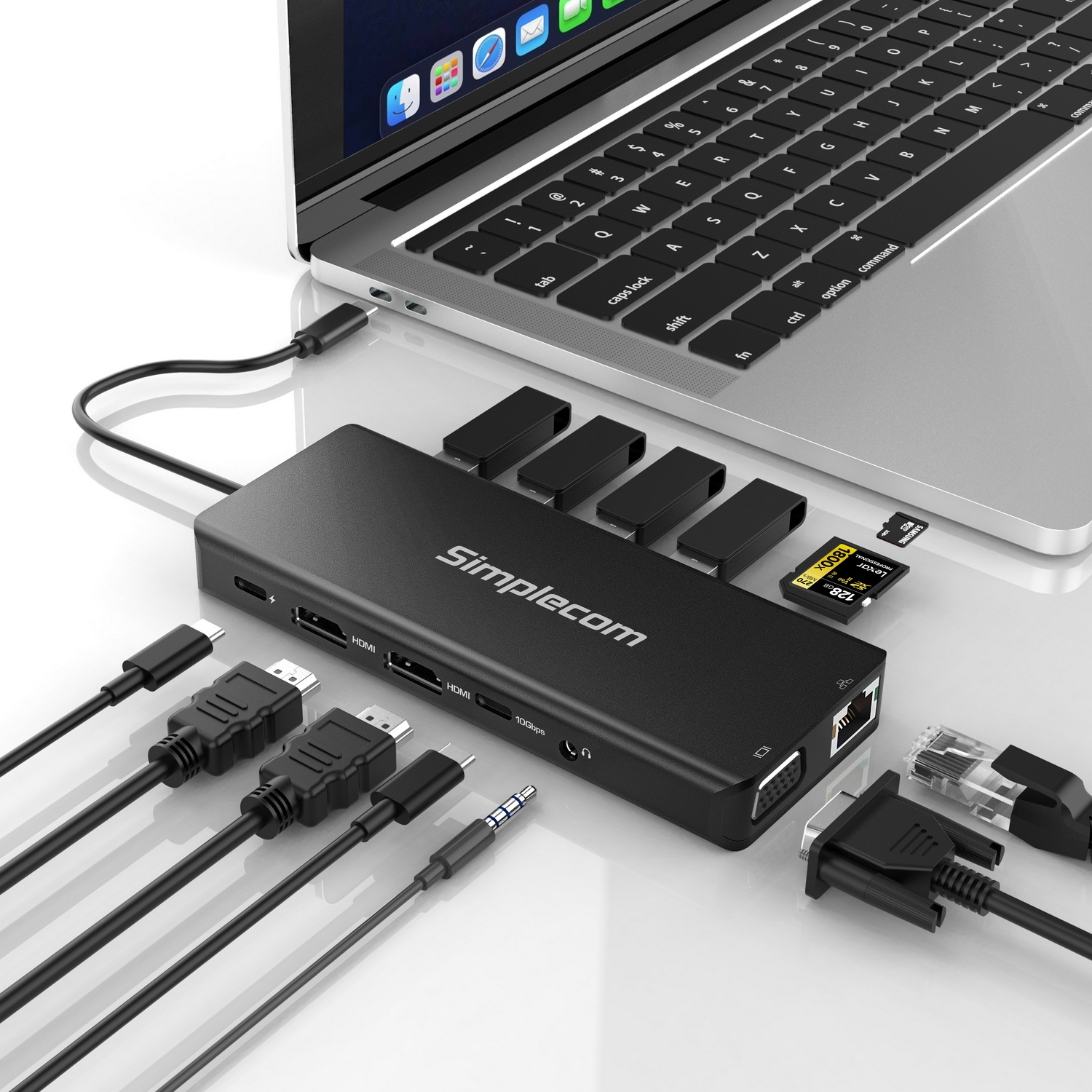 Simplecom CHN613 USB-C 13-in-1 Multiport Docking Station Dual HDMI + VGA Triple Display USB 3.2 Gen 2 10Gbps