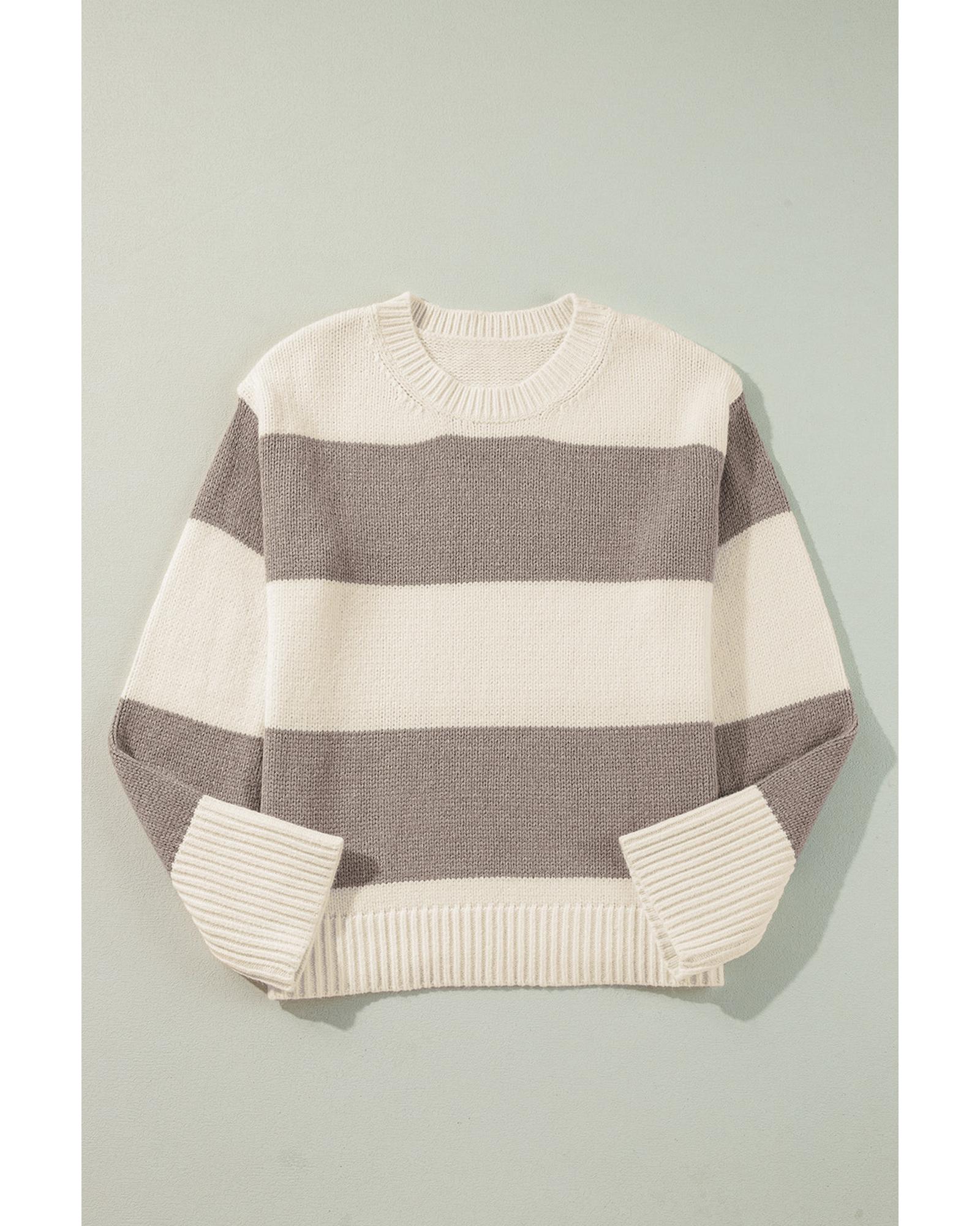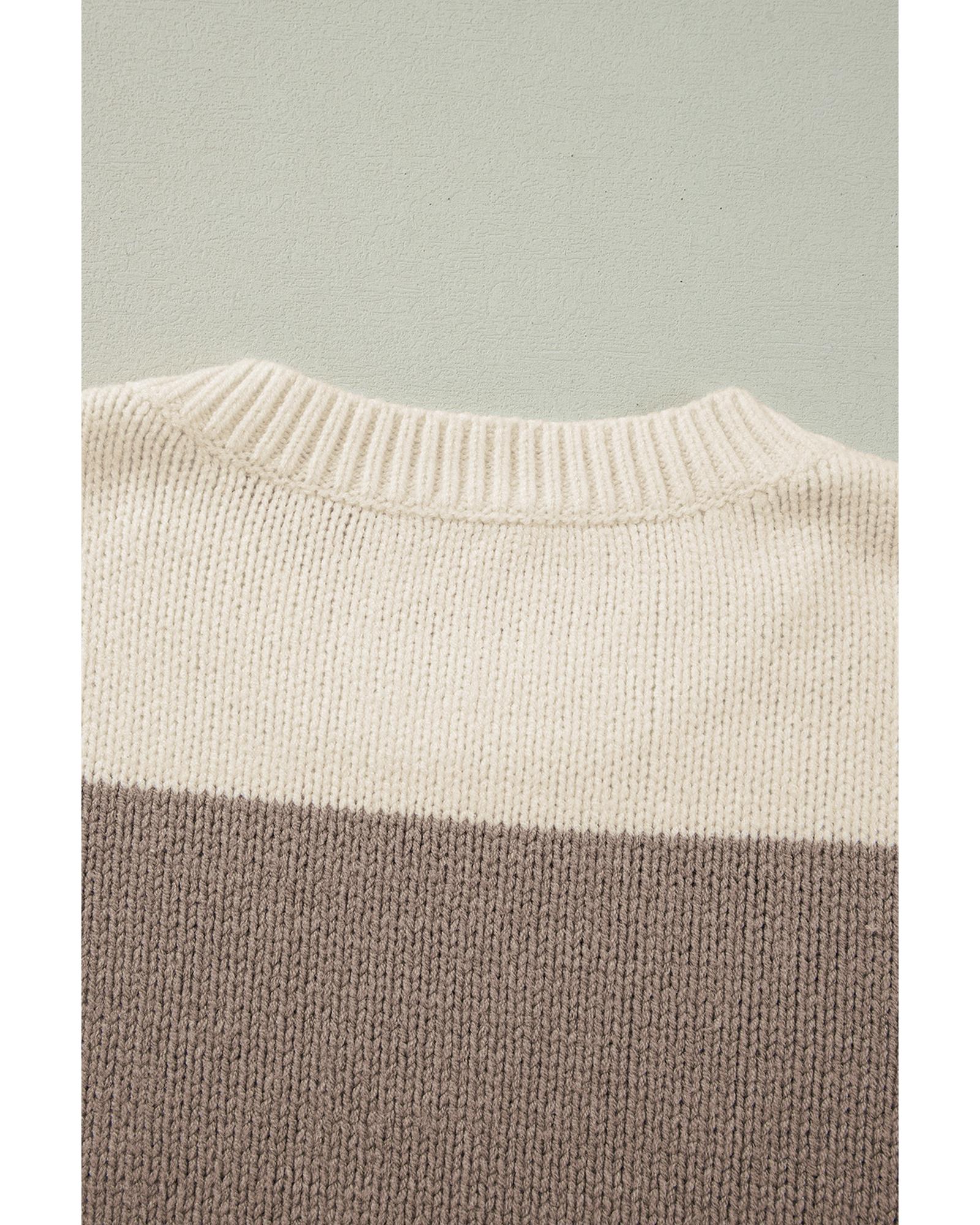 Simply Taupe Colorblock Loose Pullover Sweater – L