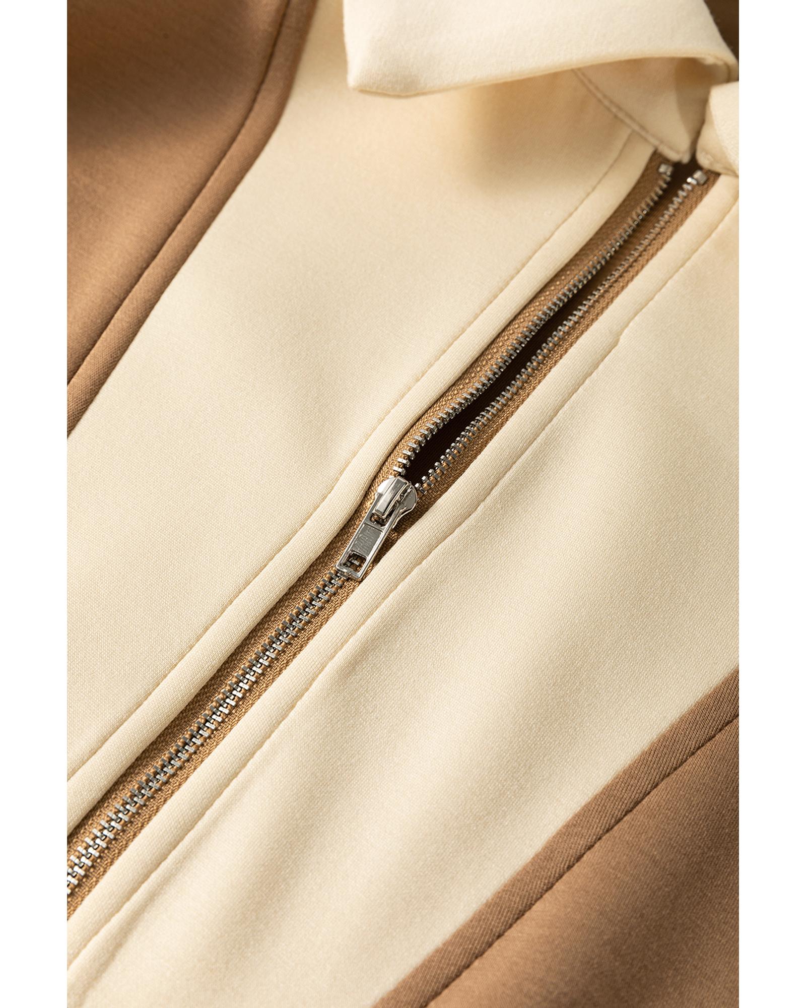 Simply Taupe Half Zipper Collared Colorblock Short Sleeve Top - M Original price was: $62.99.Current price is: $33.99.
