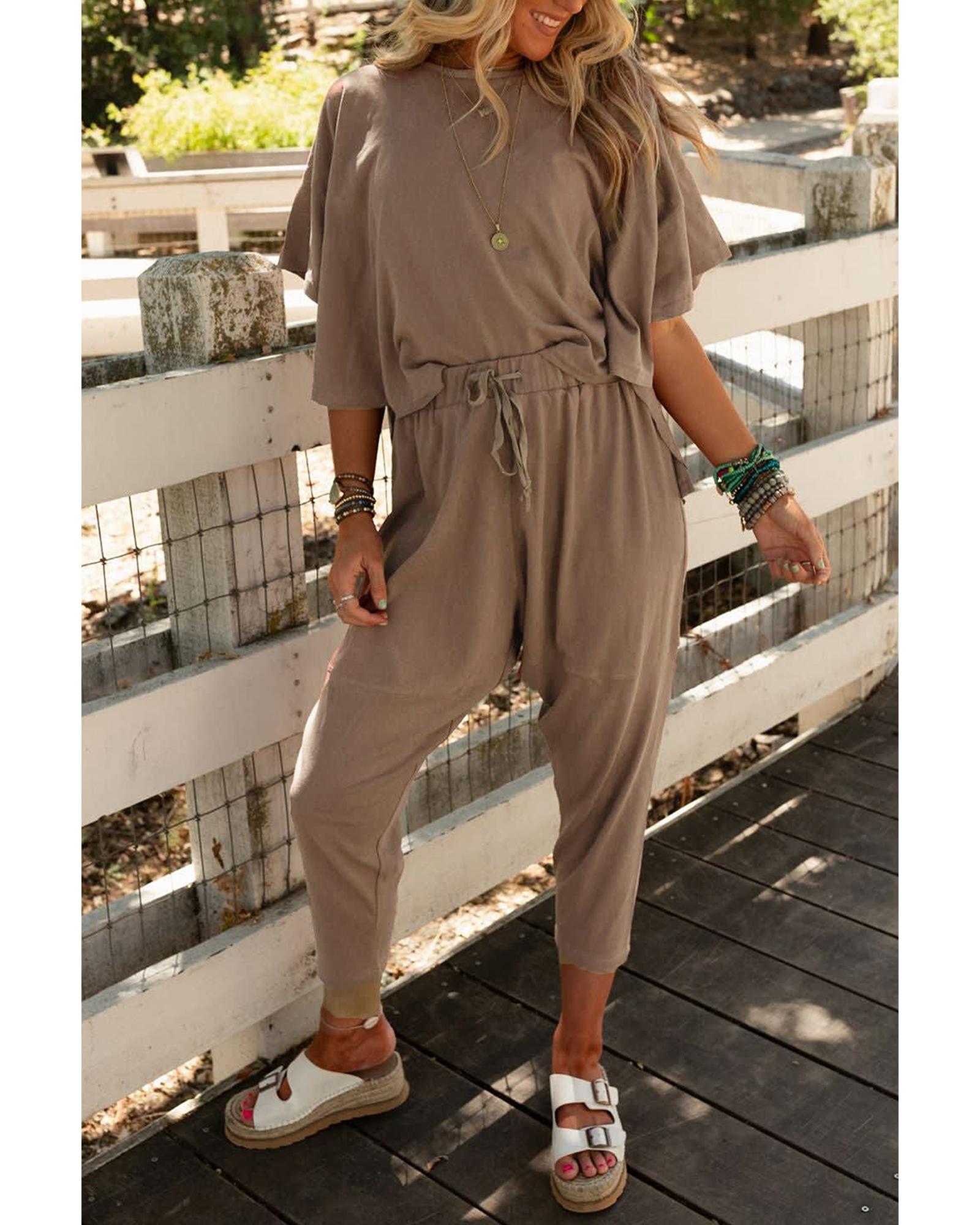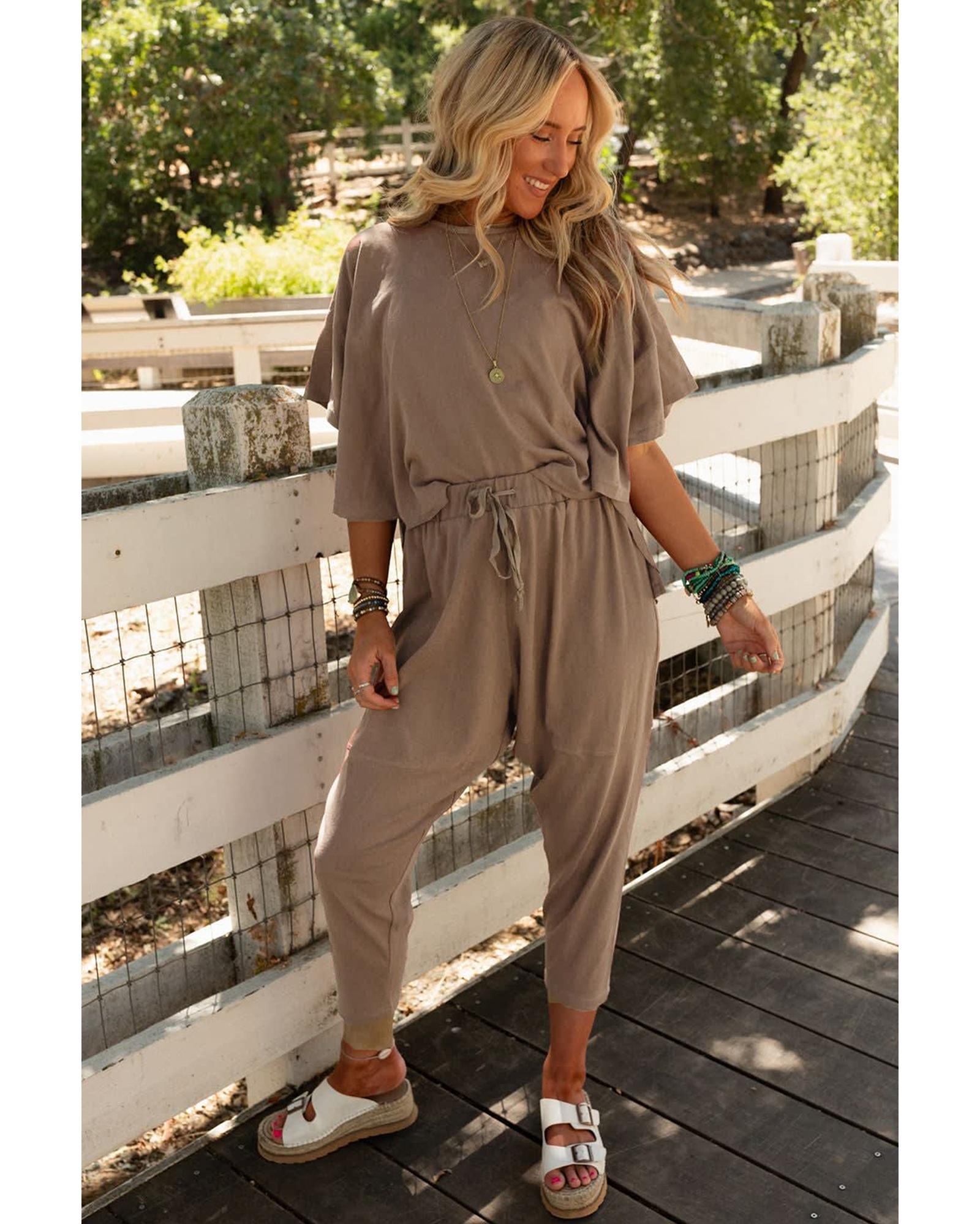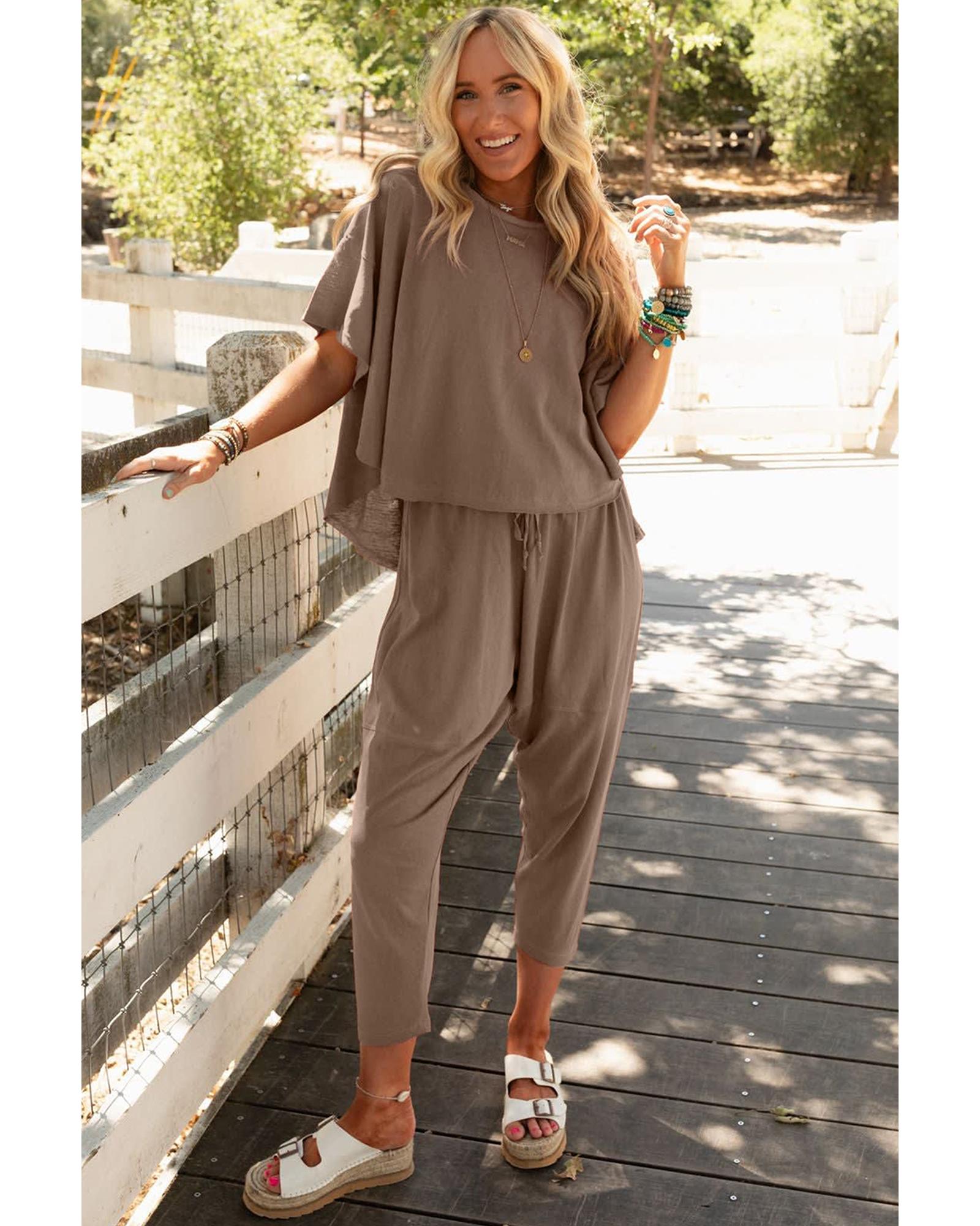 Simply Taupe High Low Boxy Fit Tee and Crop Pants Set – L