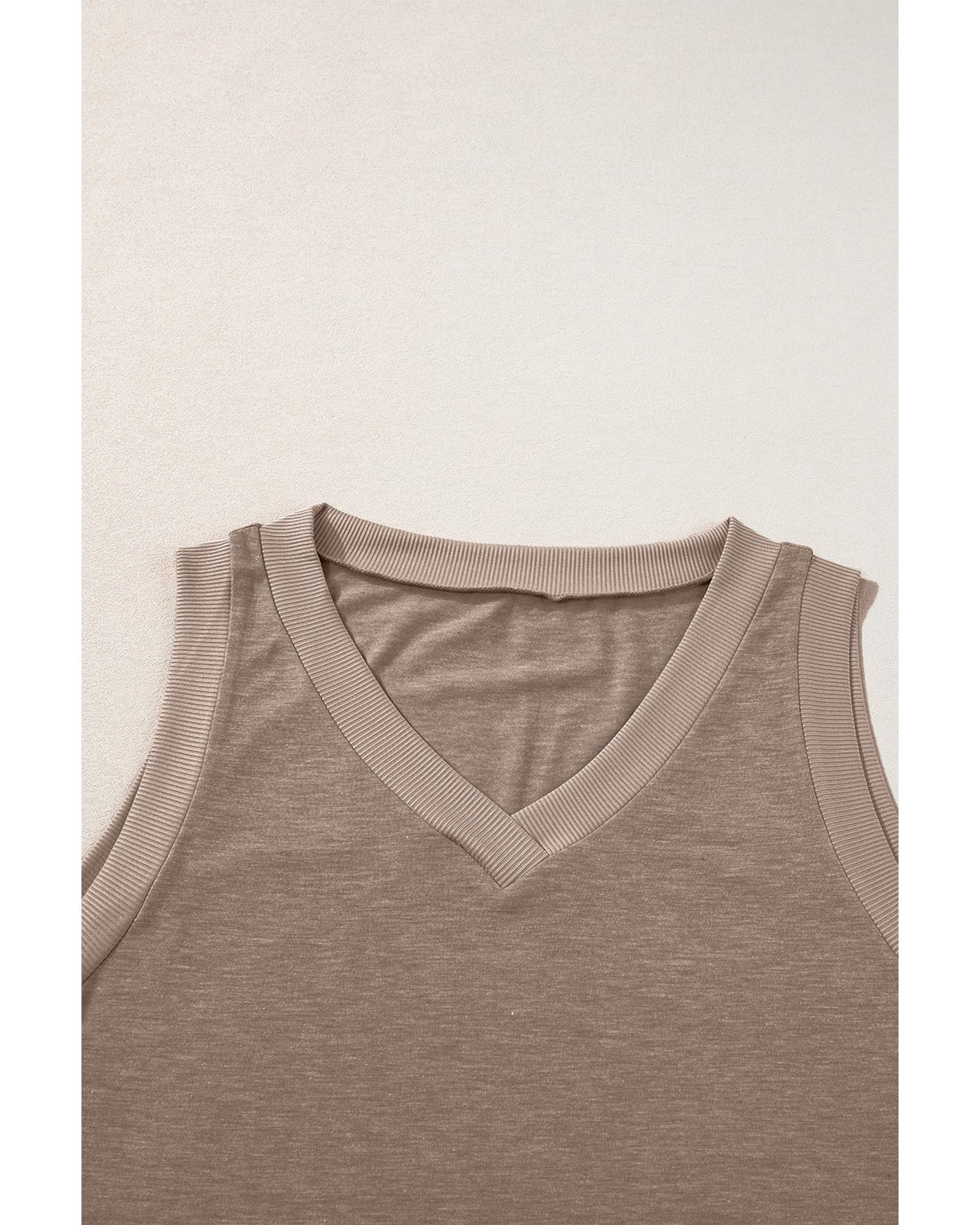 Simply Taupe Ribbed V Neck Tank – M