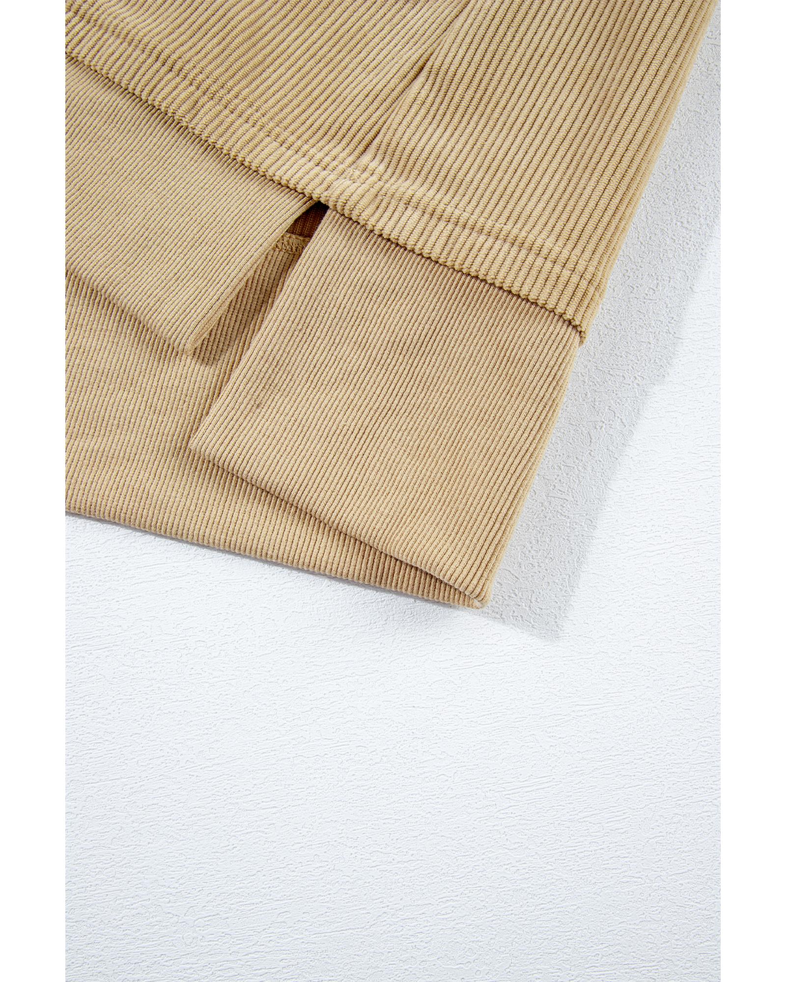 Simply Taupe Solid Ribbed Knit Buttoned Drop Shoulder Oversized Hoodie – 2XL