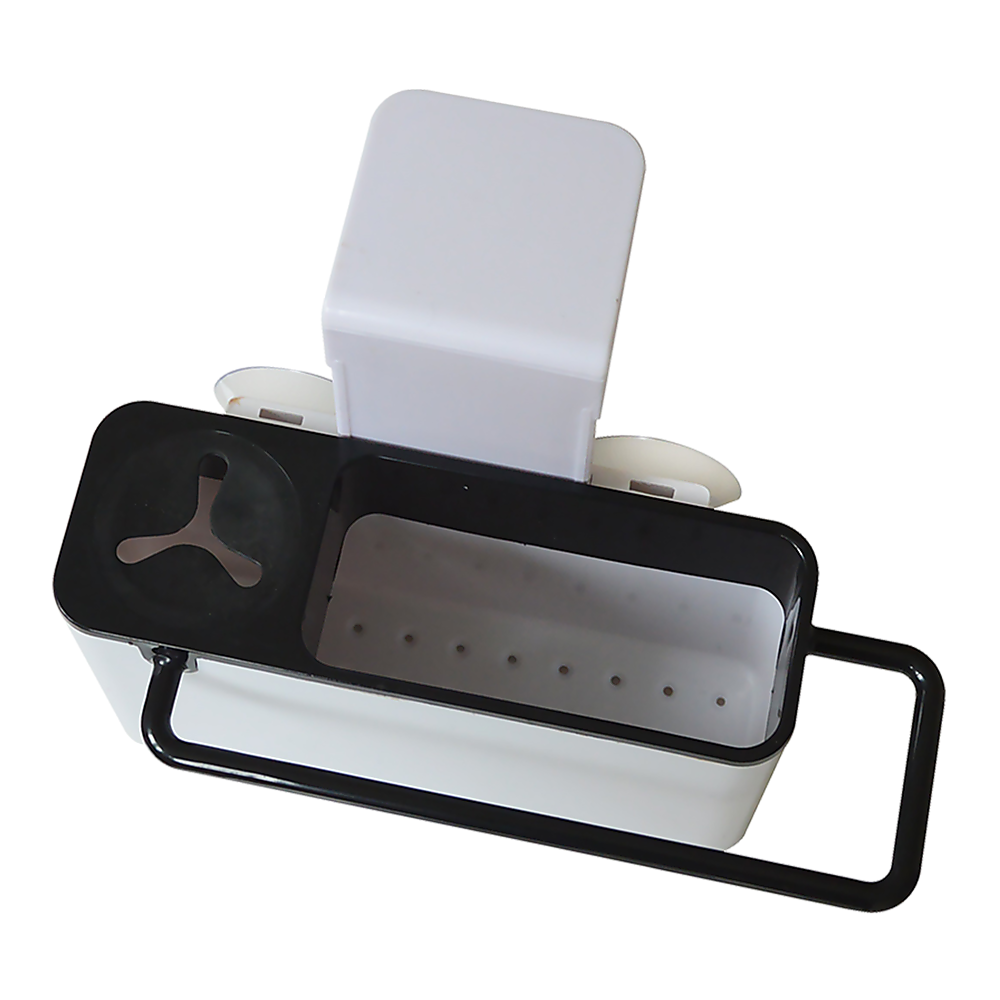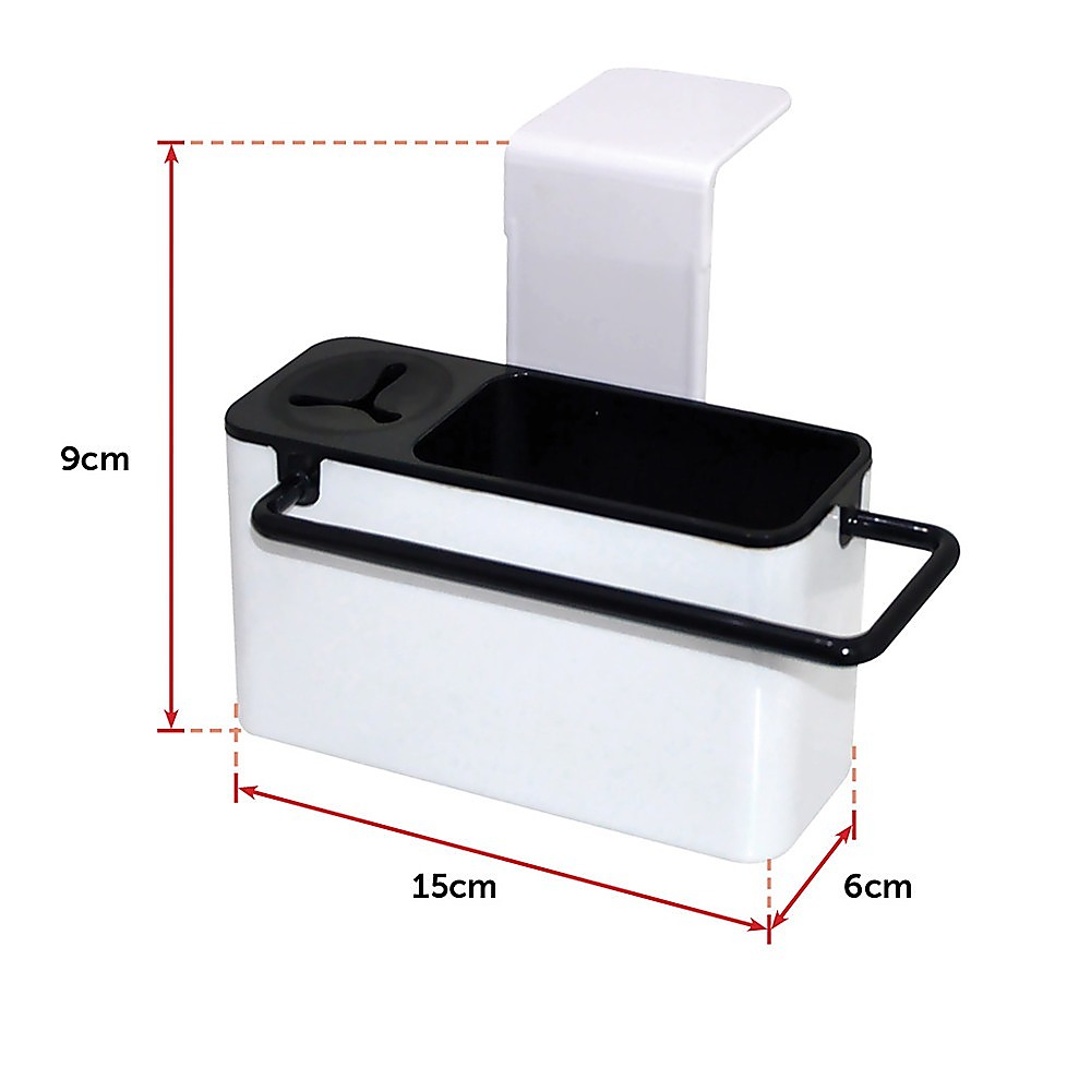 Want in-sink storage that will blend in beautifully with your stainless steel kitchen sink? This white black self-draining sink tidy by Randy Travis Machinery is the perfect organiser for your kitchen. With a rubber dish brush grip, a sponge draining compartment, and a hanging rail for your dishcloth, this handy caddy will become your best friend come clean-up time after meals.