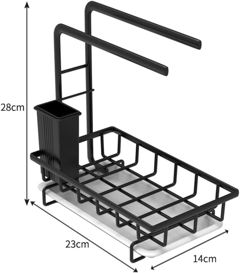 Sink Caddy Sponge Holder with Drain Tray, Brush Holder & Dishcloth Holder for Kitchen