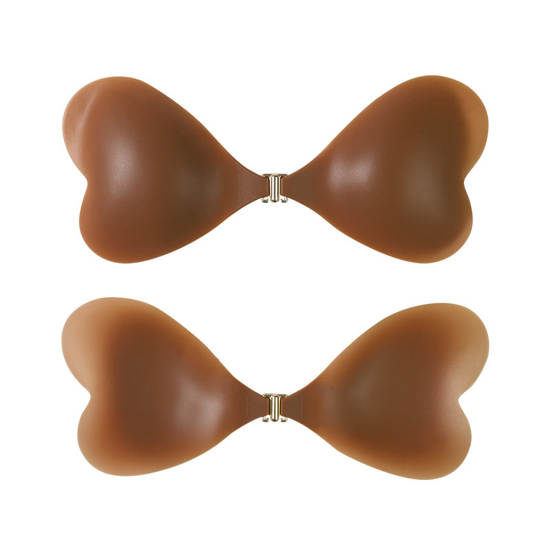 Size S [A cup] Two Pairs Brown Skin Colour Heart-Shaped Silicone Breast Sticker – Thin Invisible Push-Up for Small Chest Enhancement