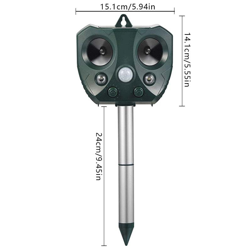 Keep unwanted animals away from your garden, yard, or outdoor areas with this efficient and eco-friendly Solar Ultrasonic Animal Repellent. Designed to deter rodents, birds, and other wildlife, this device offers powerful ultrasonic sound and flashing LED lights to ensure your space remains protected.