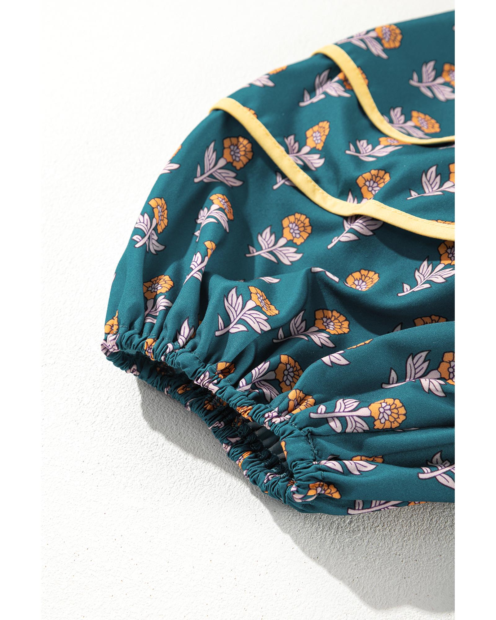 Skobeloff Floral Contrast Trim Square Neck Puff Sleeve Dress – L