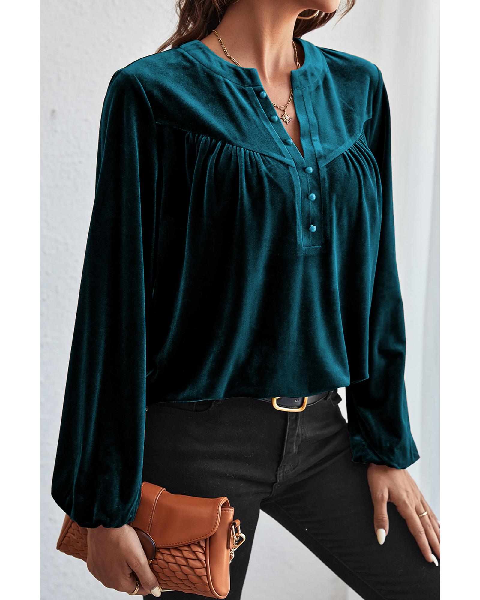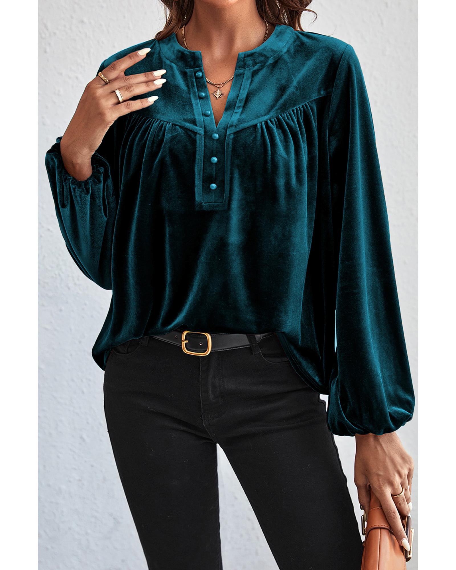 Skobeloff Lantern Sleeve Beaded Split V Neck Velvet Top – XL