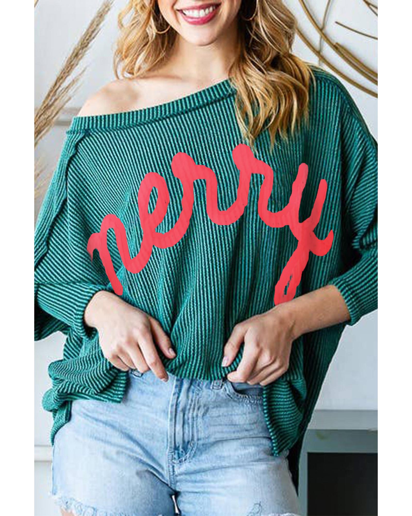 Skobeloff Merry Graphic Corded Batwing Sleeve Knit Top – M