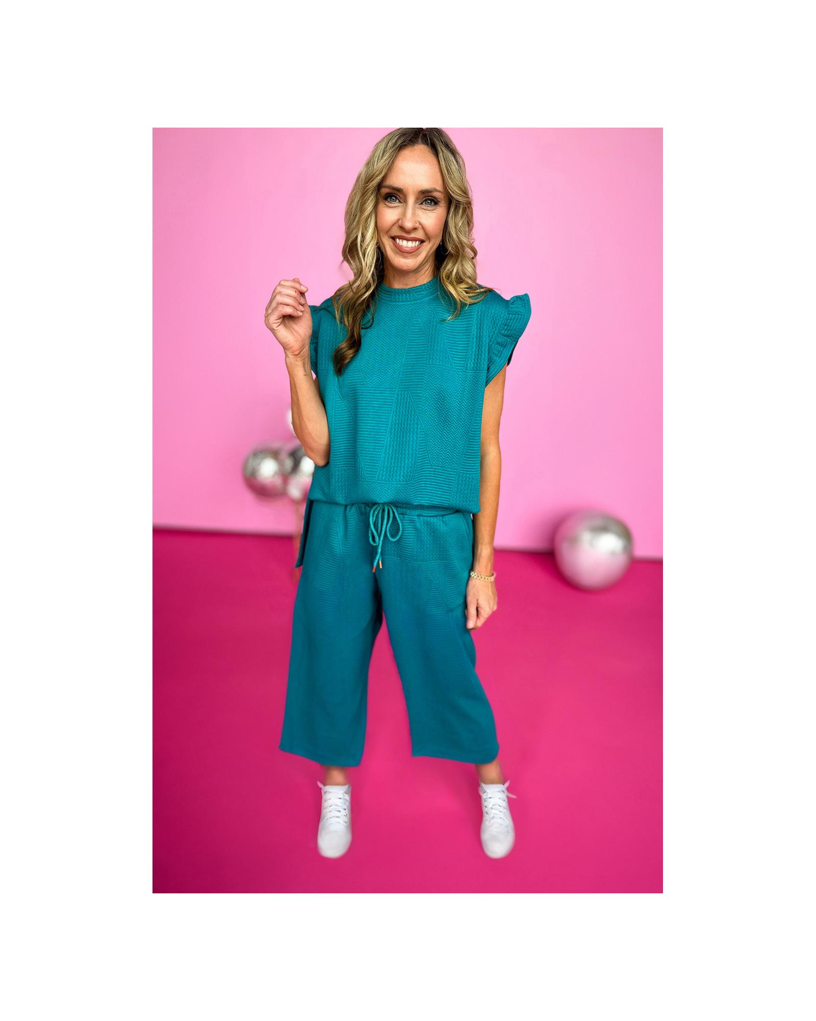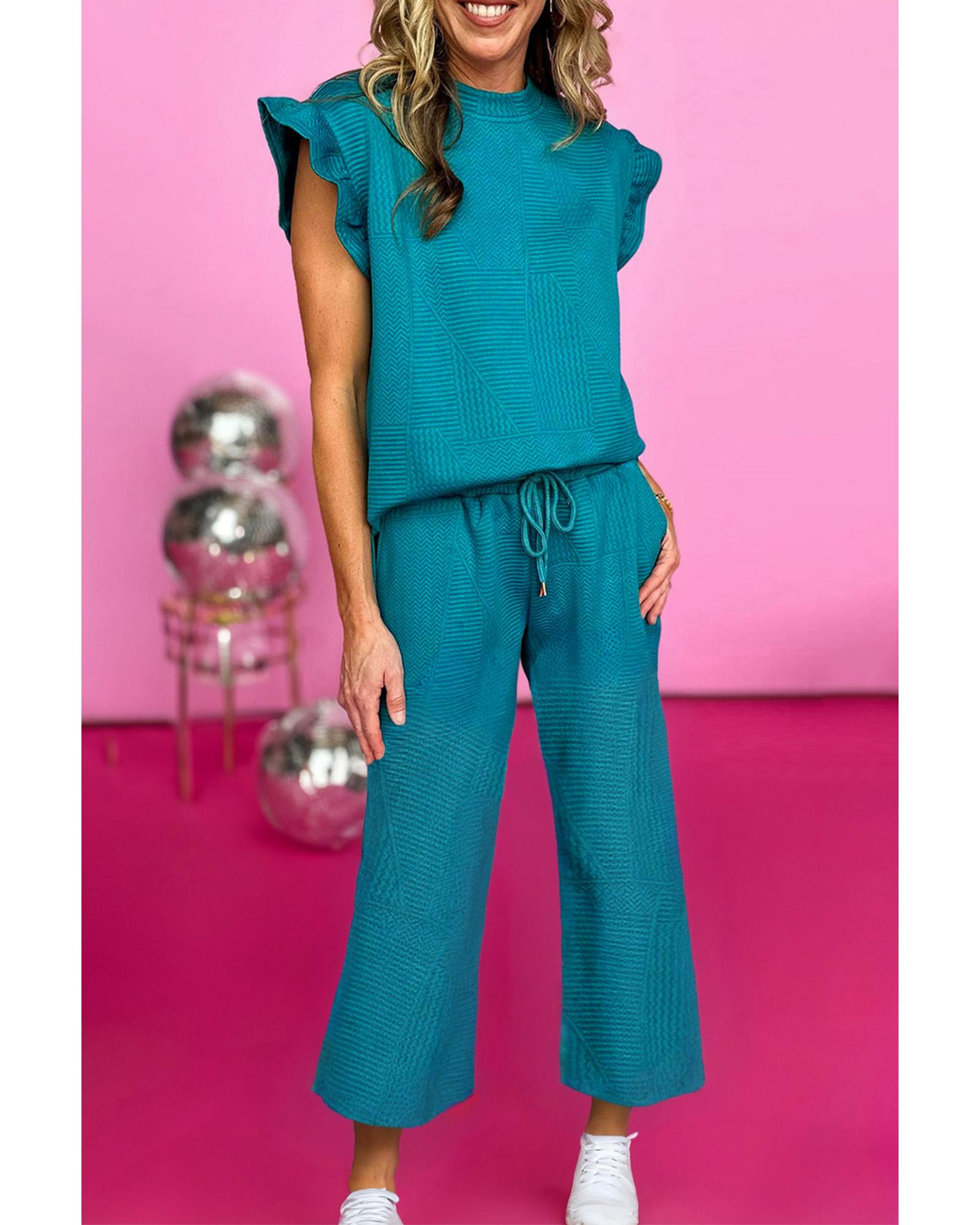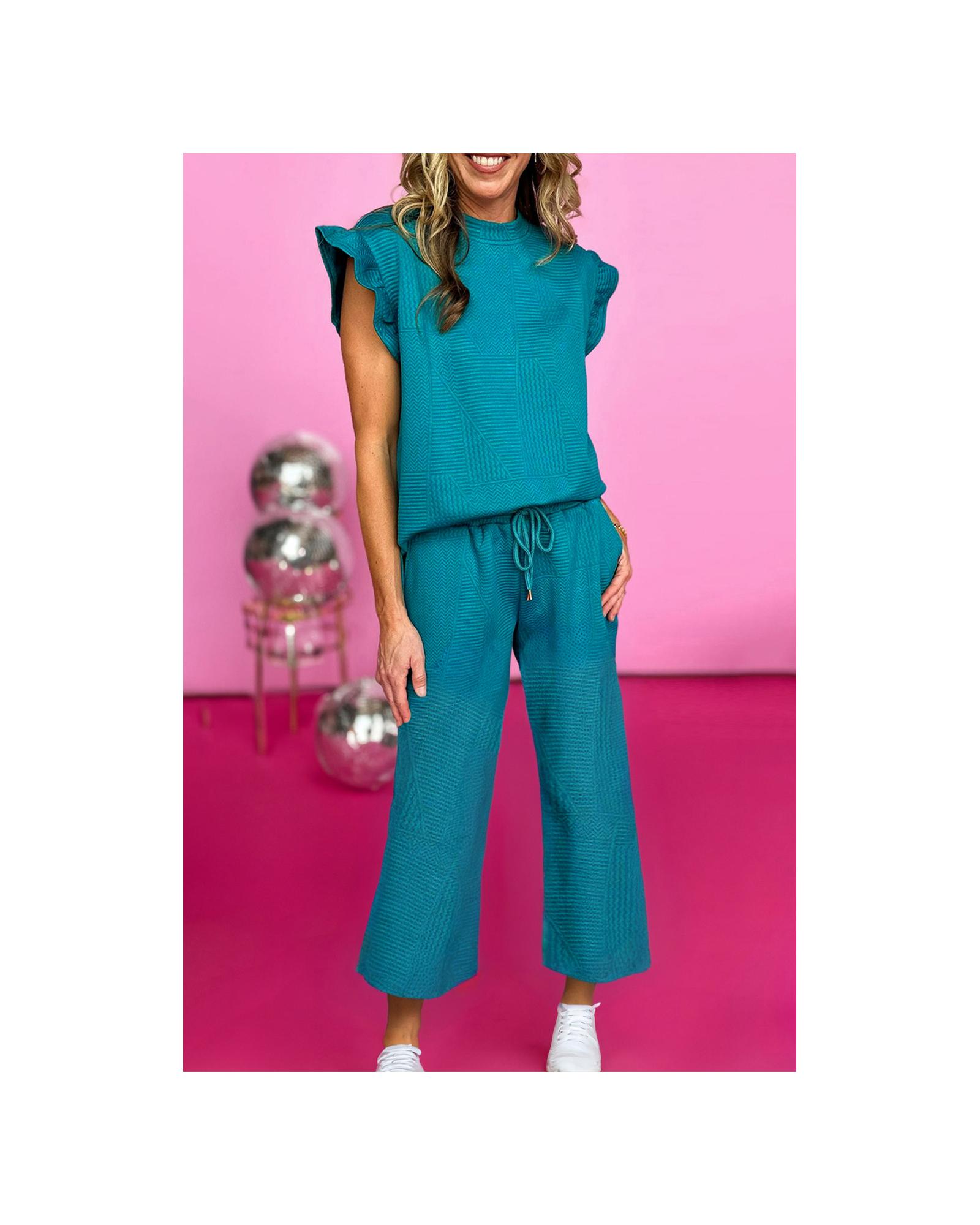 - Skobeloff Ruffled Sleeve Summer Top and Cropped Loose Pants Set