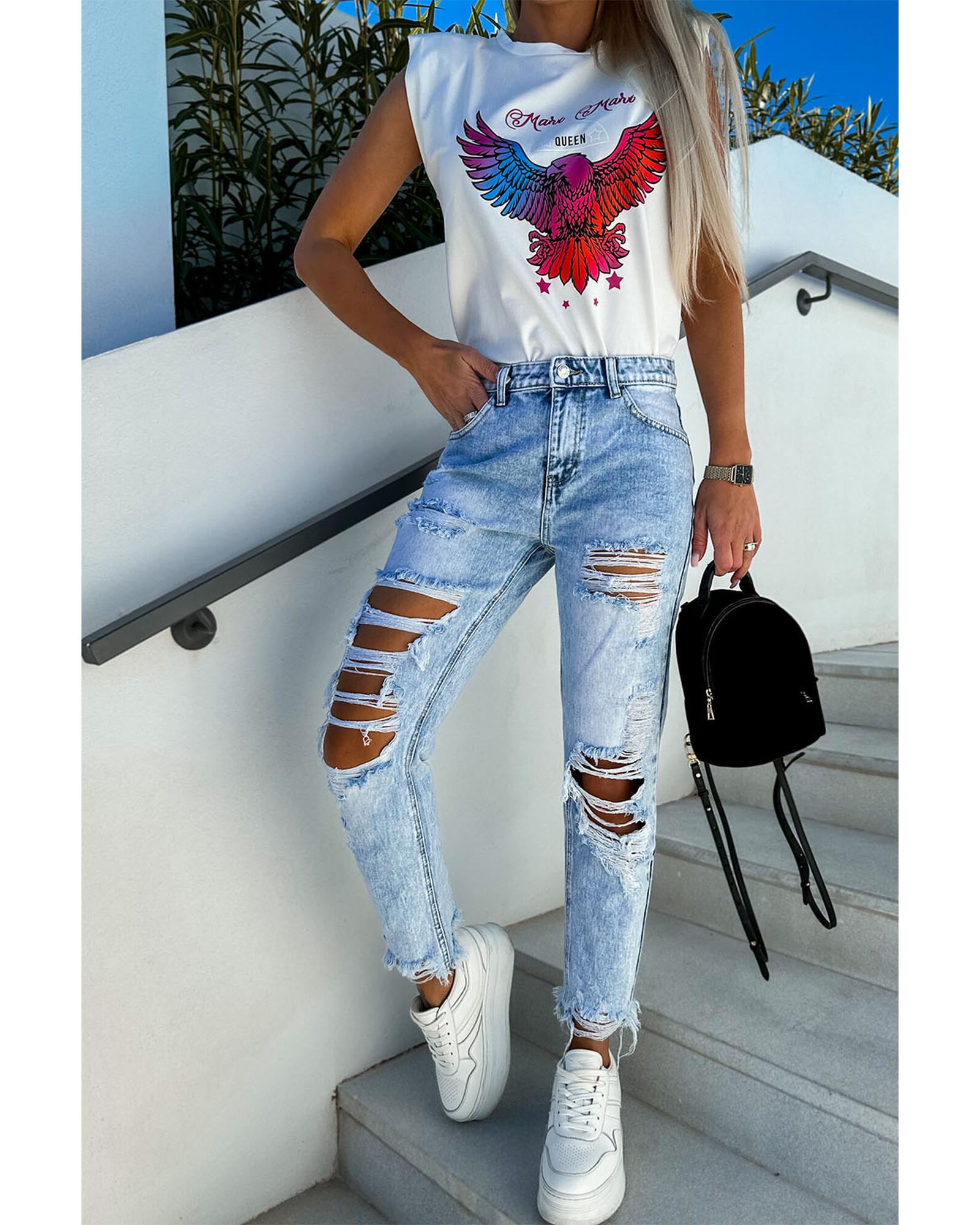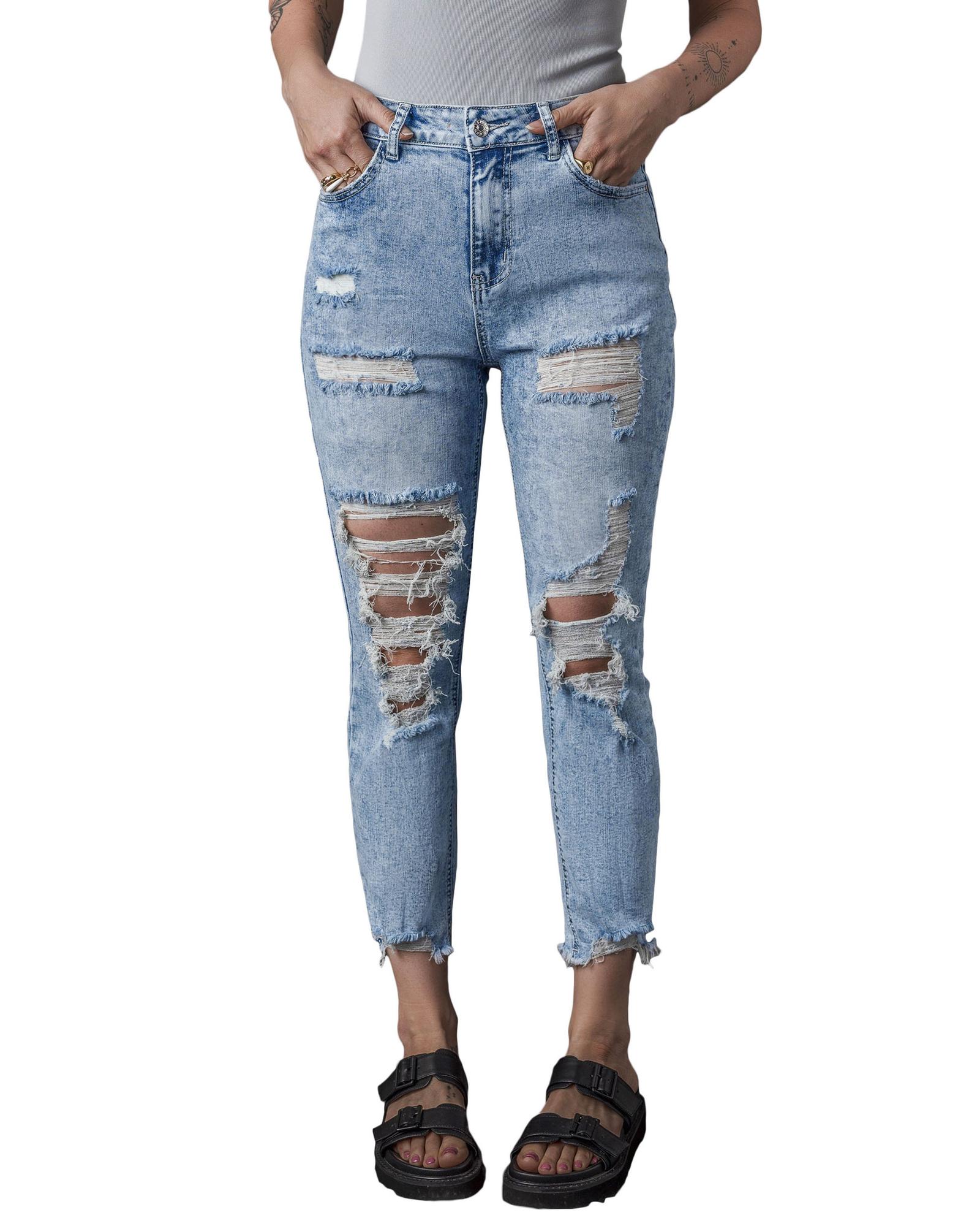 Sky Blue Acid Wash Distressed Slim Fit Jeans – 14 US