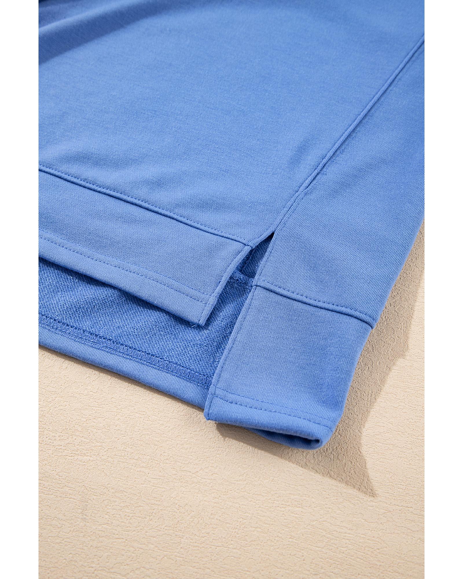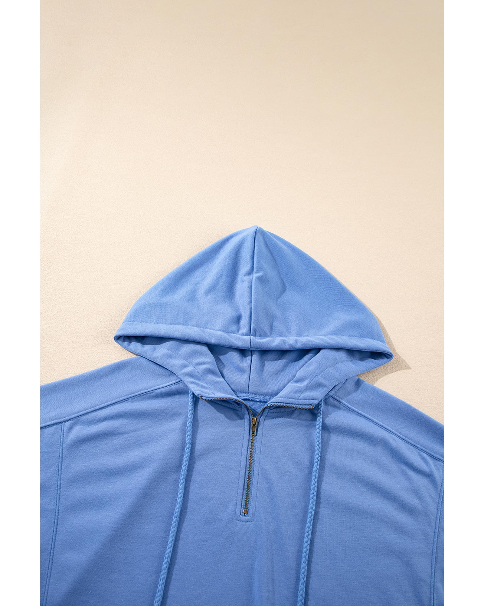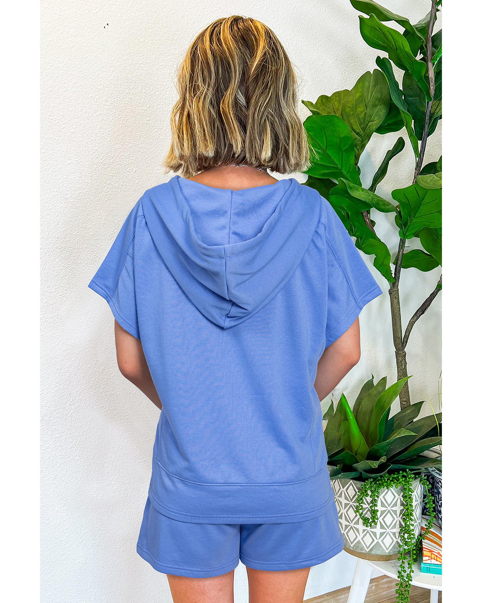 Sky Blue Casual Zipped Short Sleeve Hoodie and Shorts Set – L