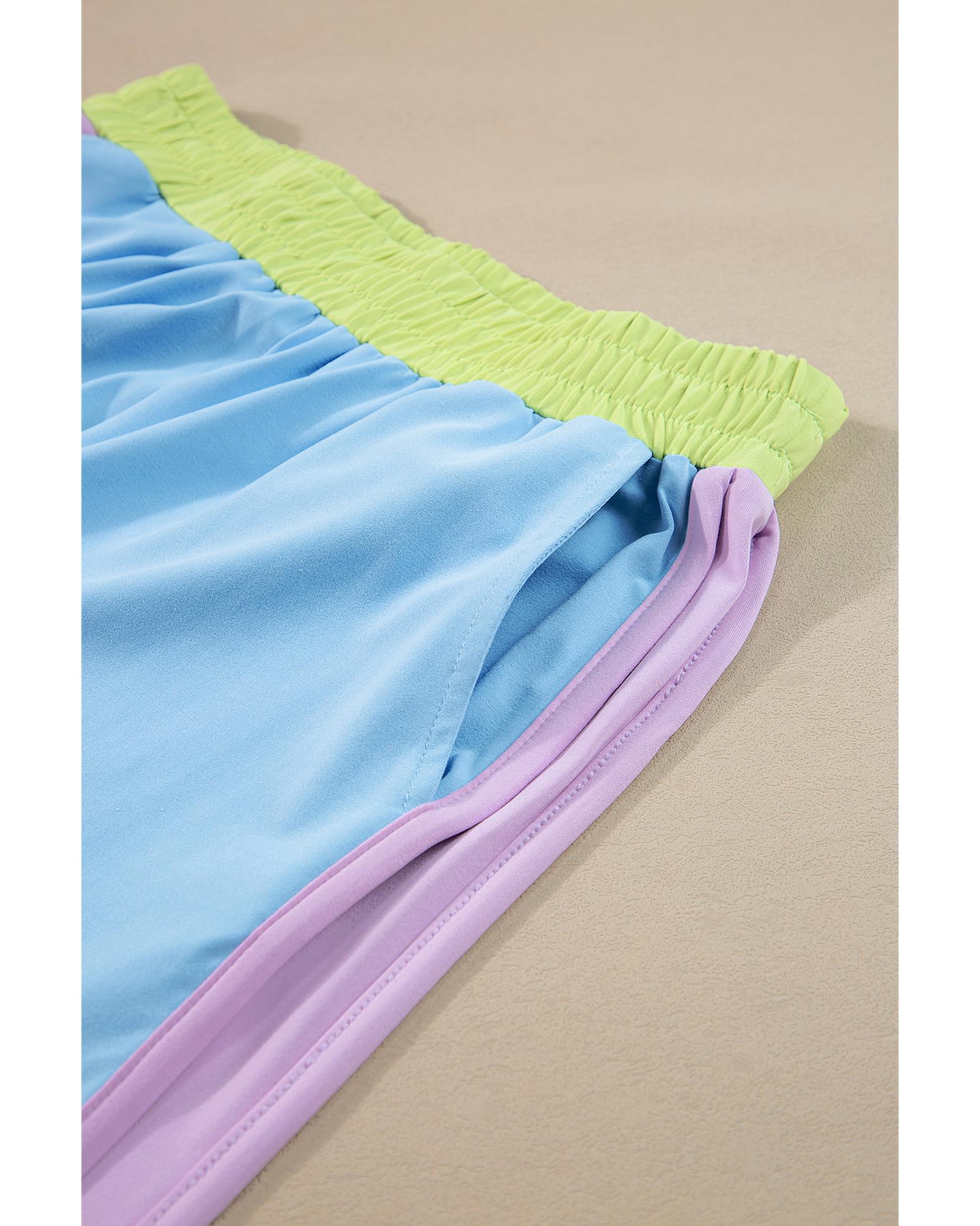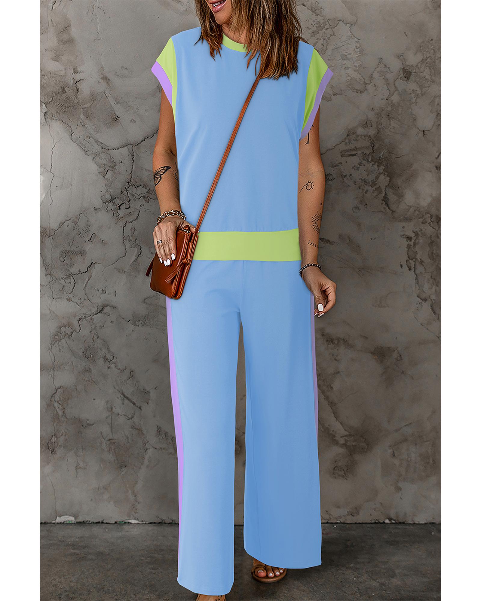 Sky Blue Color Block Detail Casual Two-piece Outfit – XL