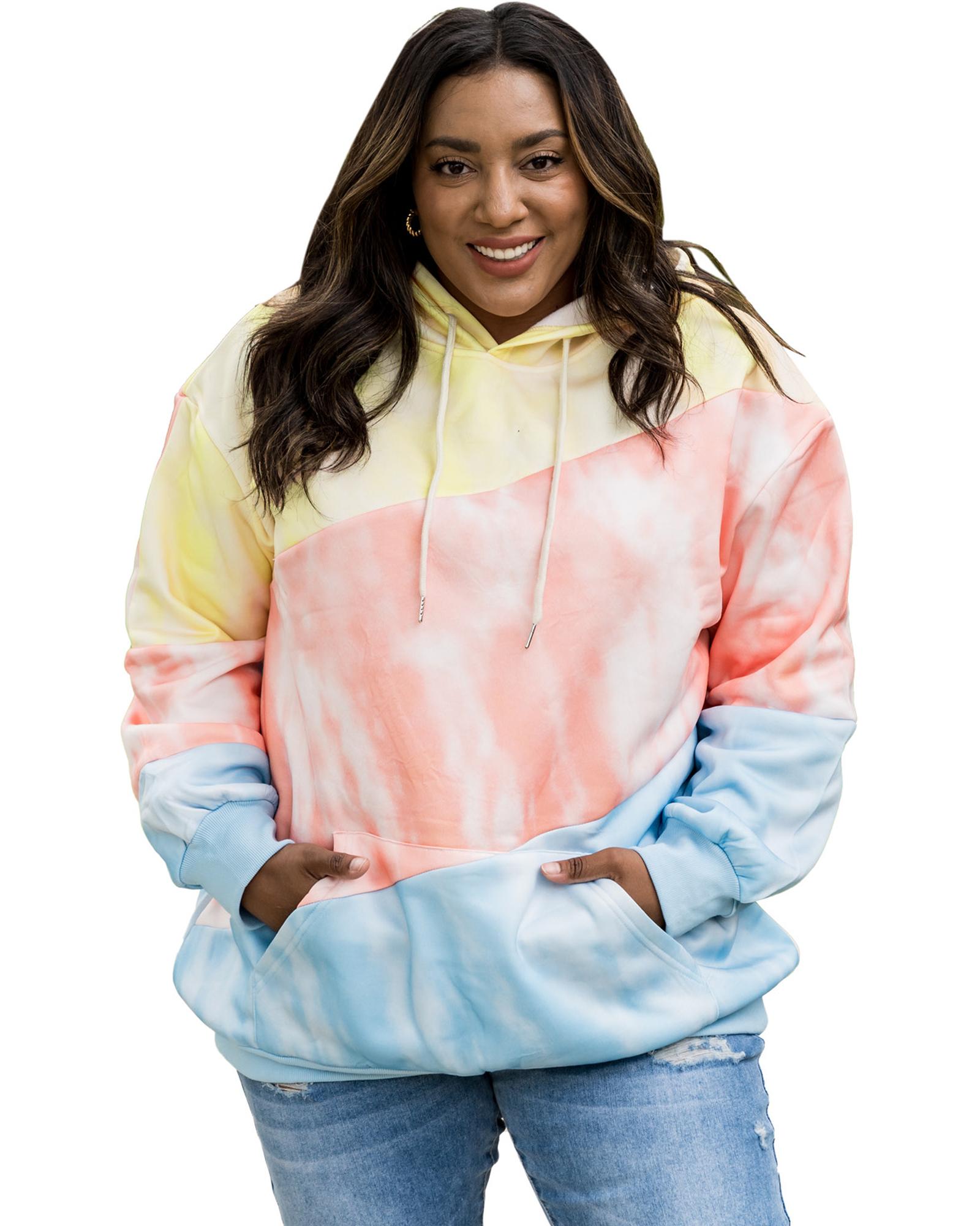 Sky Blue Colorblock Kangaroo Pocket Plus Size Hoodie – 2X