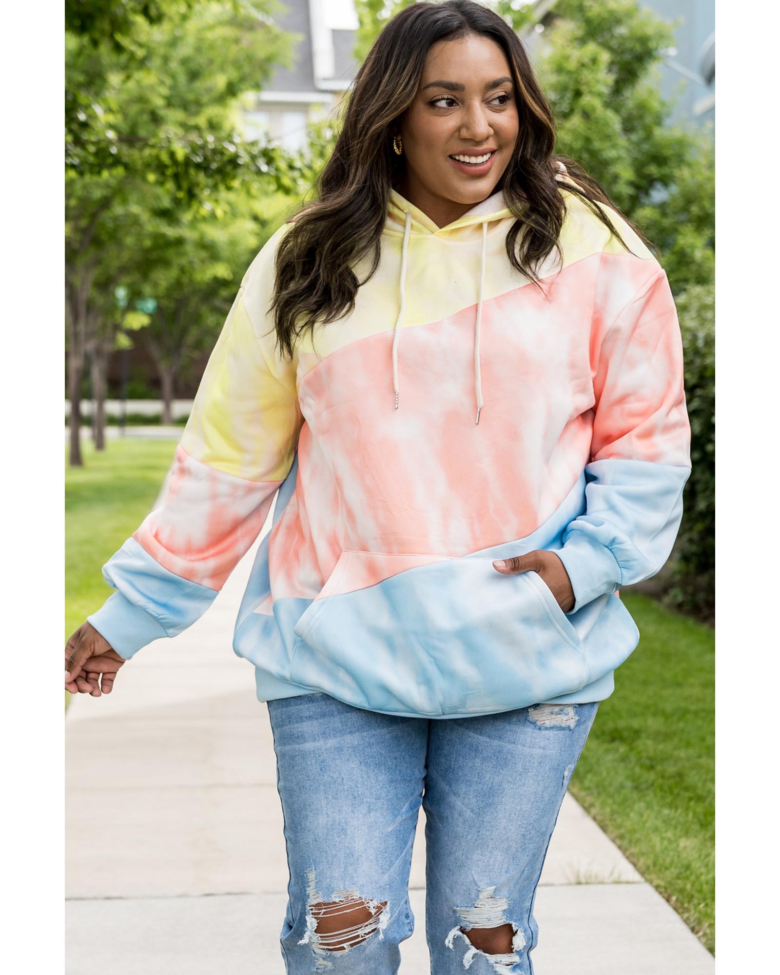 Sky Blue Colorblock Kangaroo Pocket Plus Size Hoodie – 5X