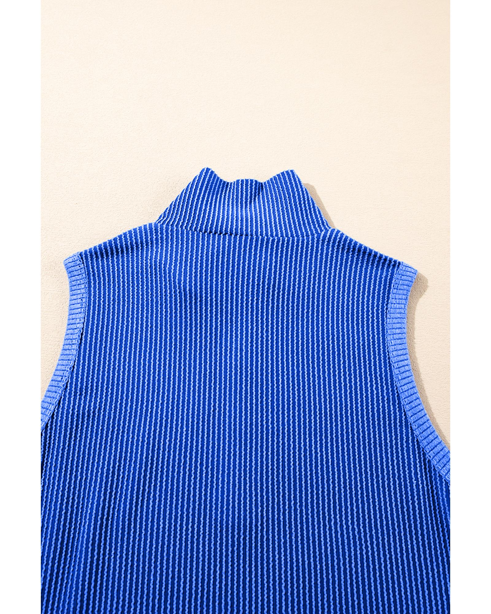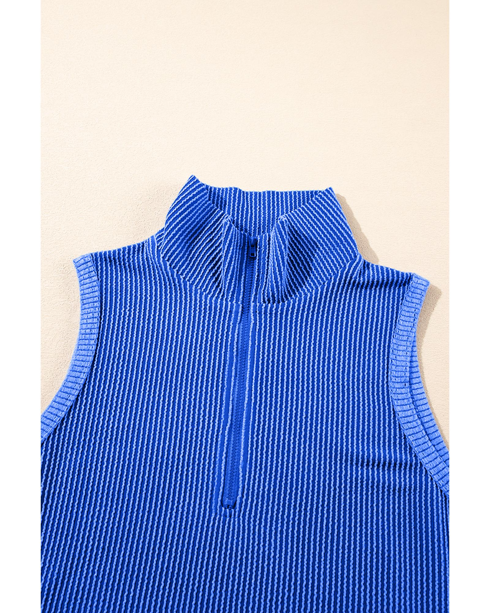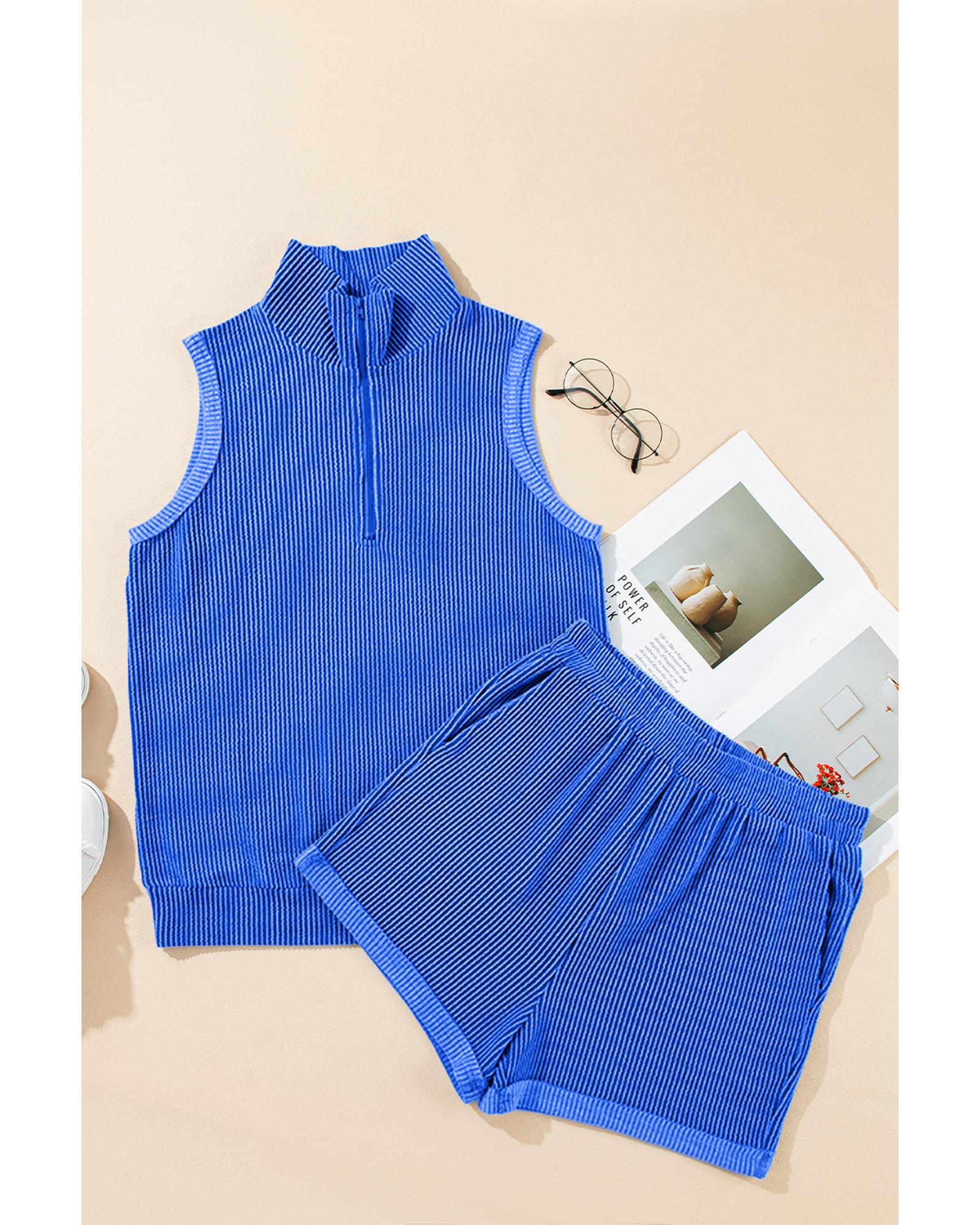 Sky Blue Corded Collared Half Zip Tank Top Two Piece Shorts Set – XL