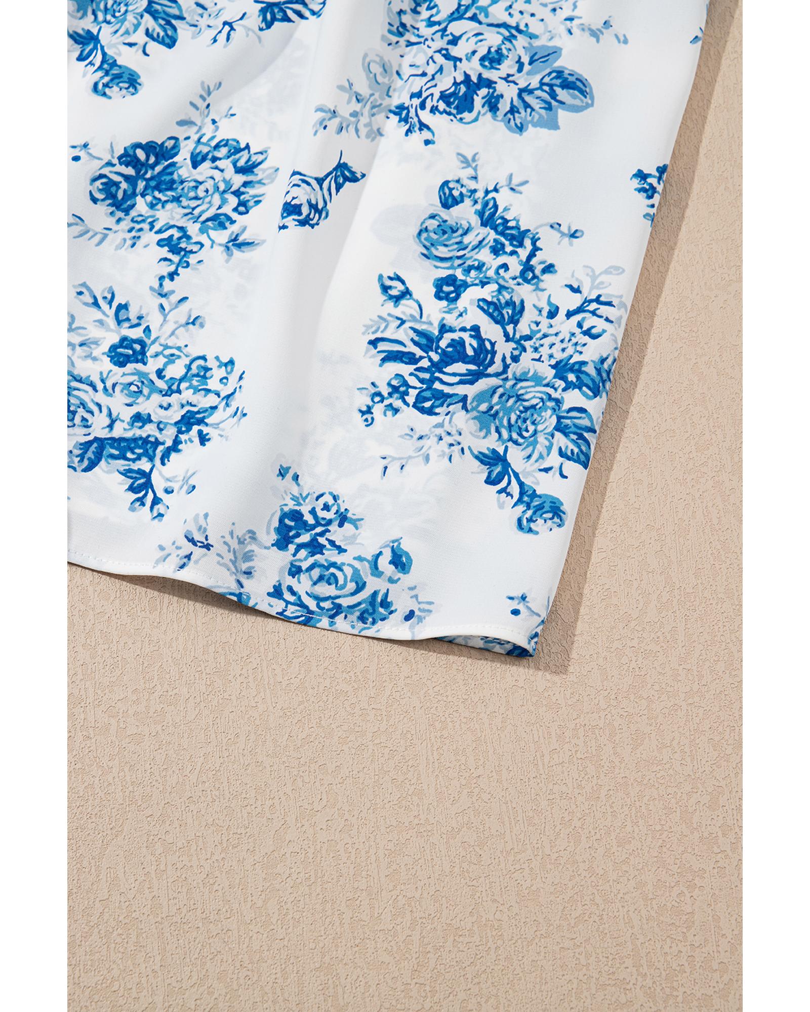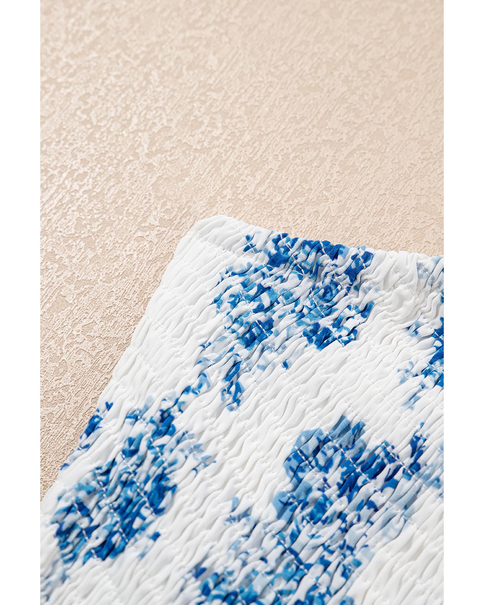 Sky Blue Floral Print Shirred Knot Shoulder Sleeveless Long Dress - XL Original price was: $85.99.Current price is: $46.99.
