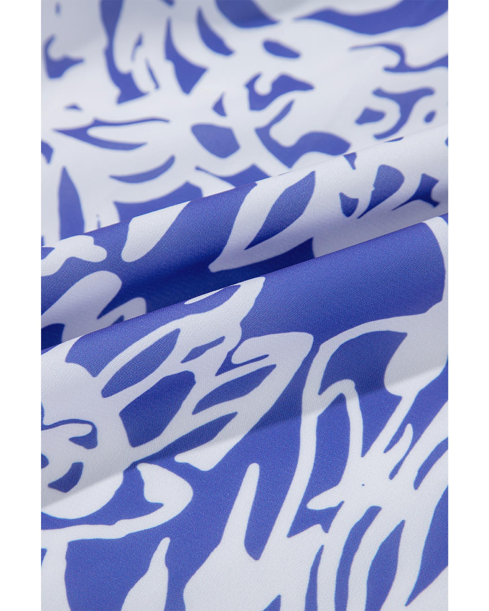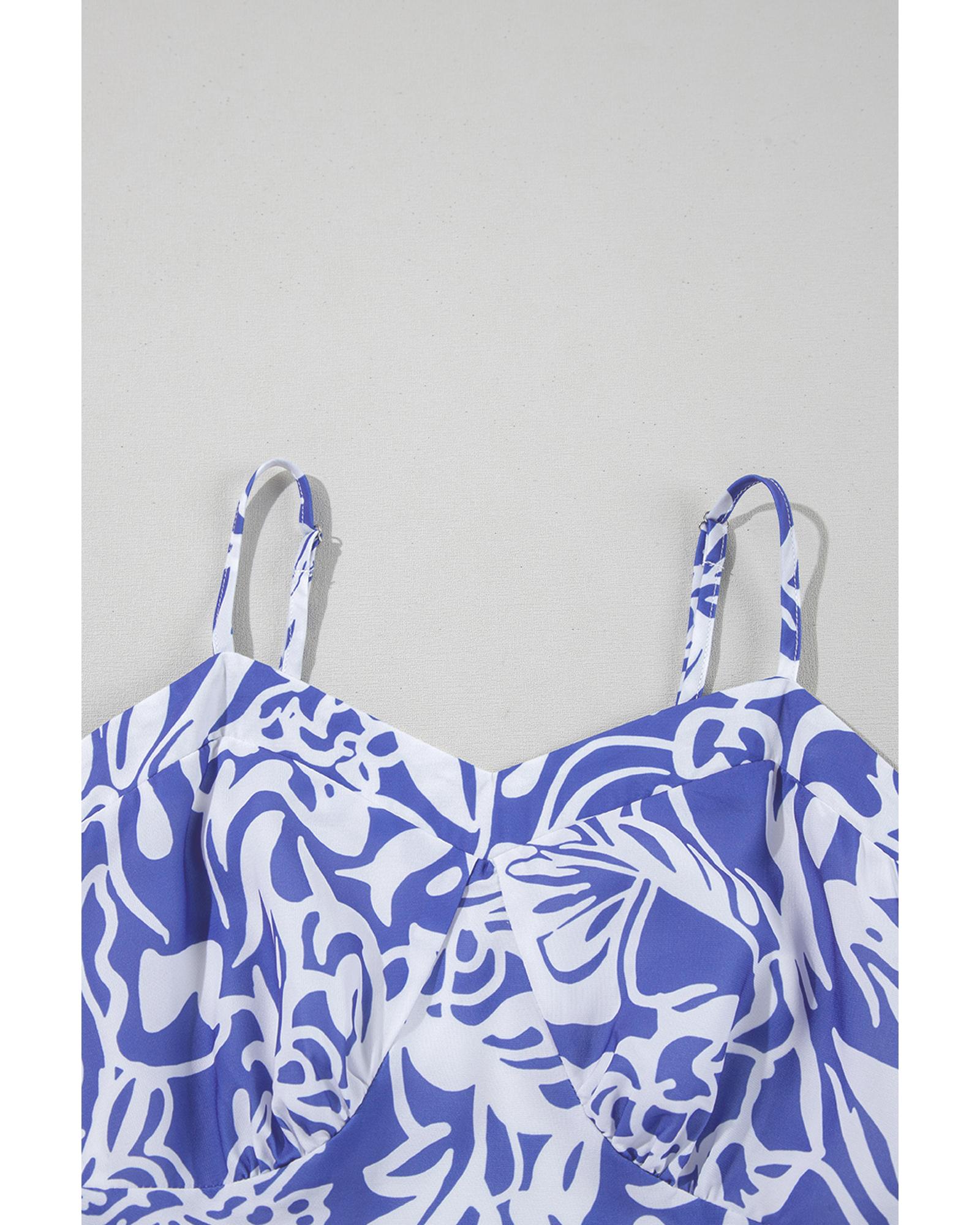 Sky Blue Floral Print Spaghetti Strap High Waist Maxi Dress – L