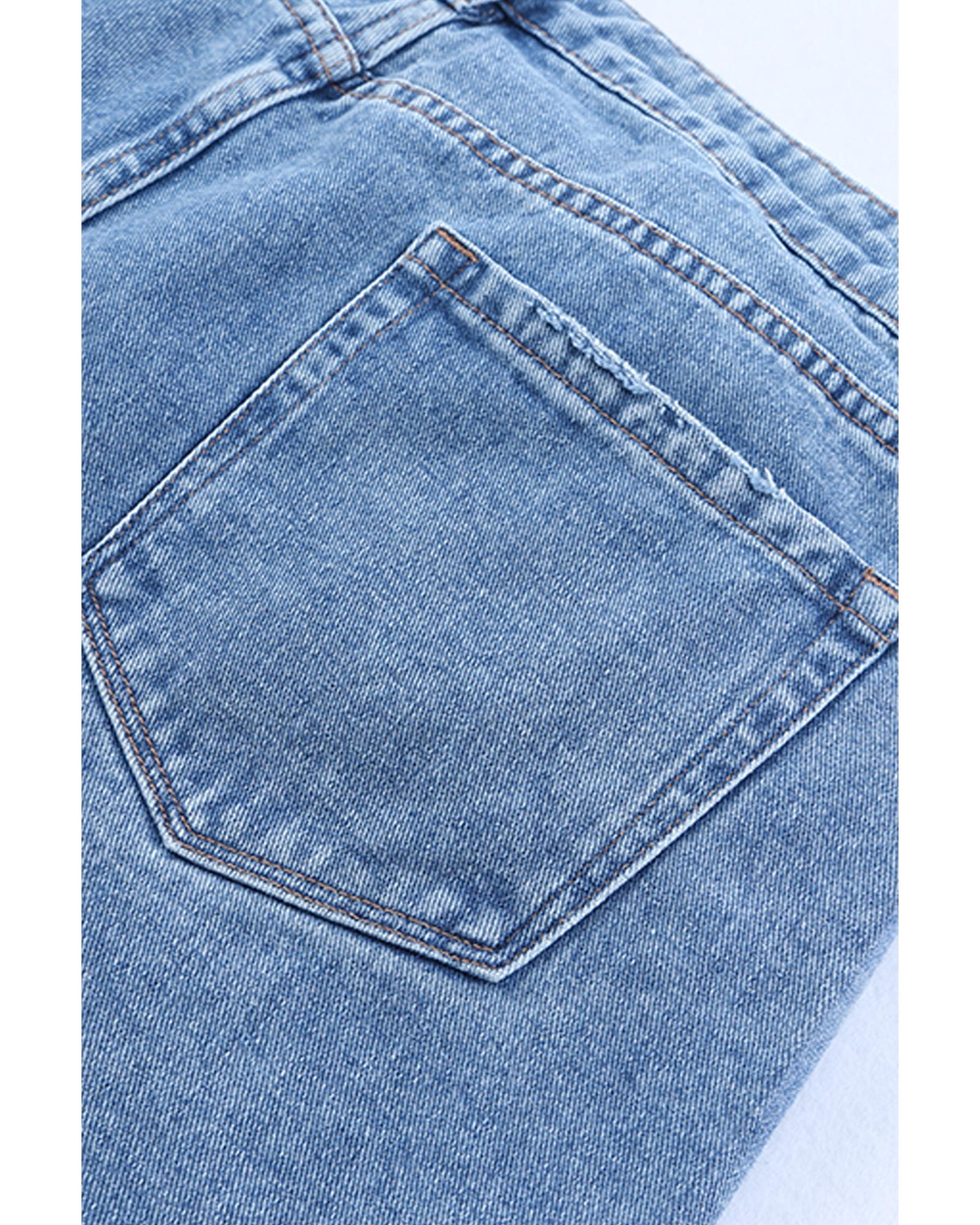 Sky Blue Halloween Skull Patchwork Distressed Straight Jeans - 8 US Original price was: $81.99.Current price is: $44.99.