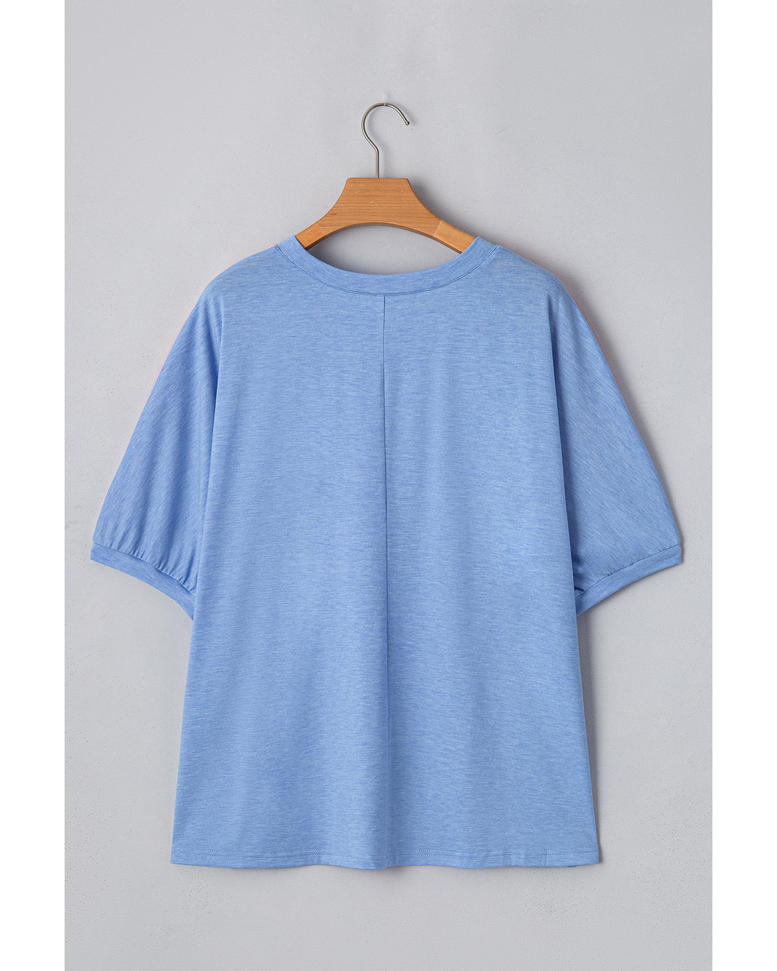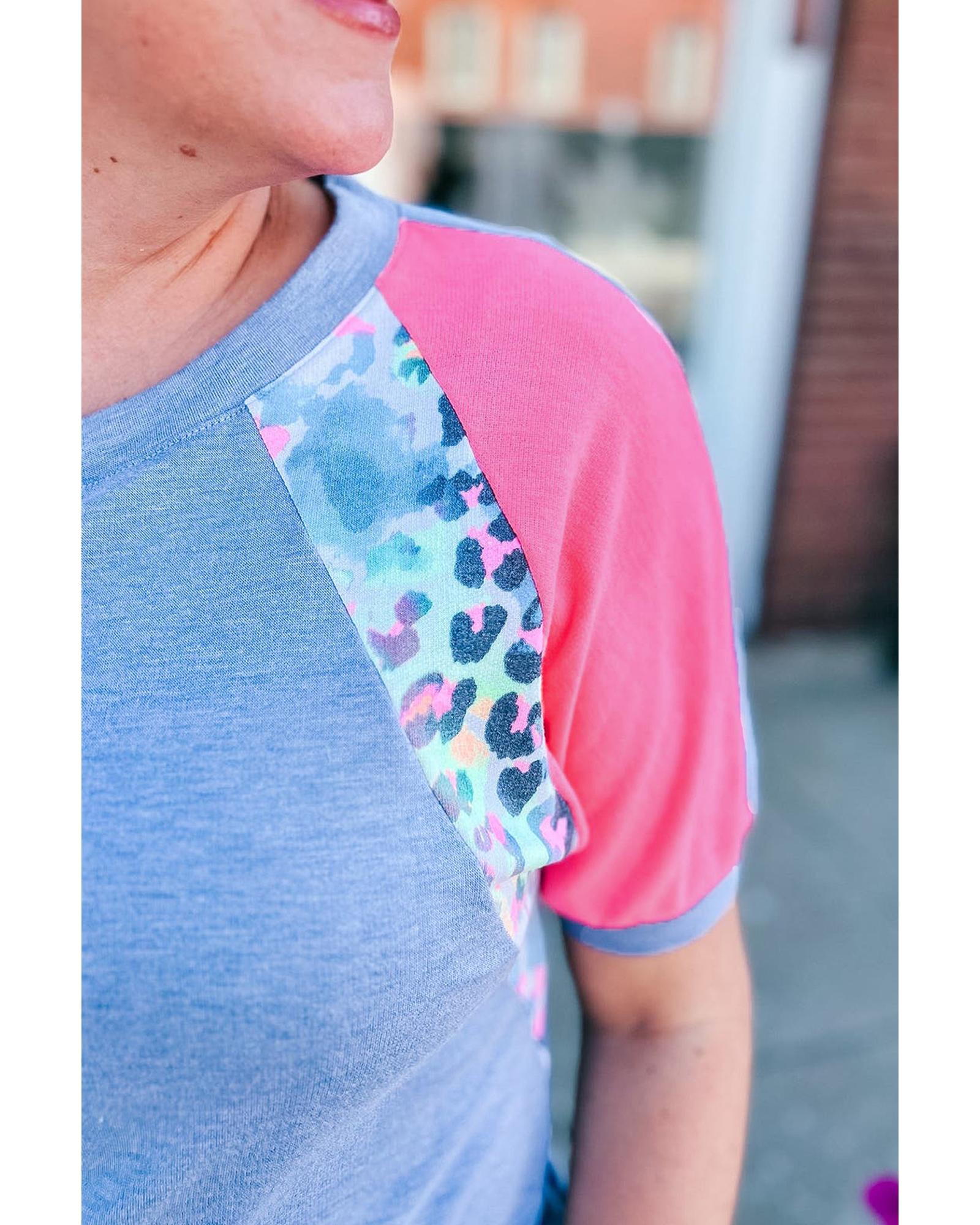 Sky Blue Leopard Print Patch Colorblock Plus Size T Shirt – 4X
