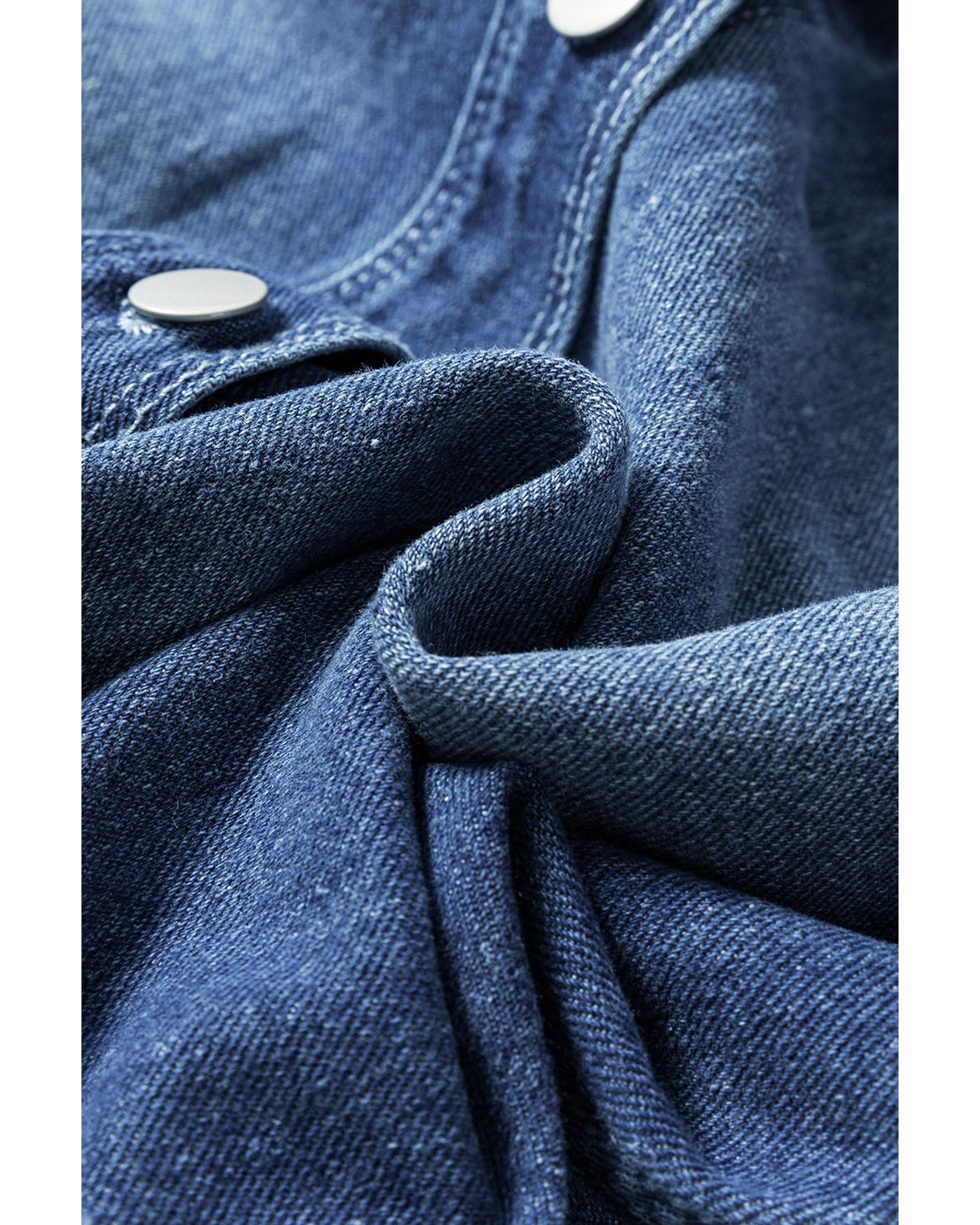 Sky Blue Light Wash Distressed Frayed Long Denim Jacket – L