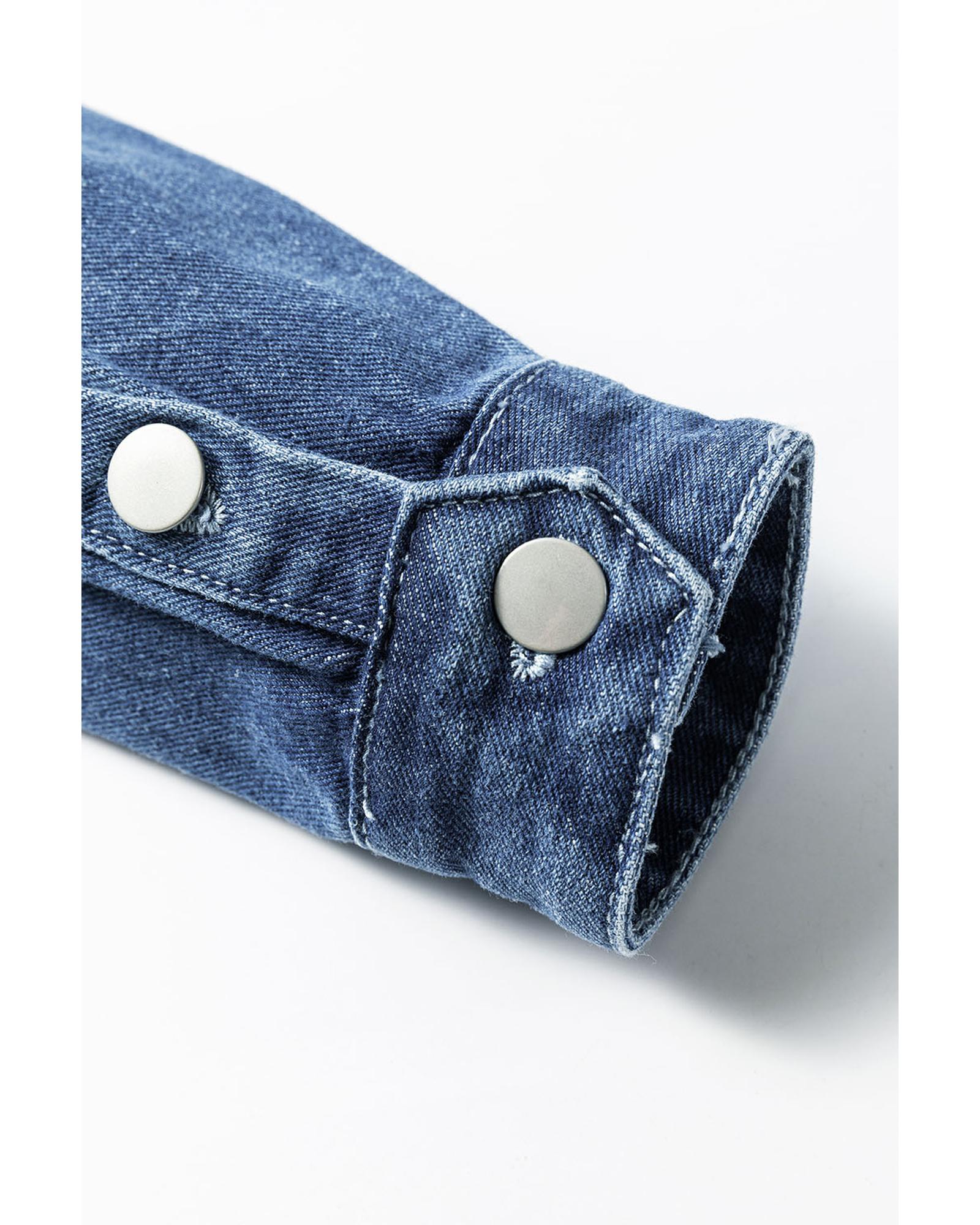 Sky Blue Light Wash Distressed Frayed Long Denim Jacket – M