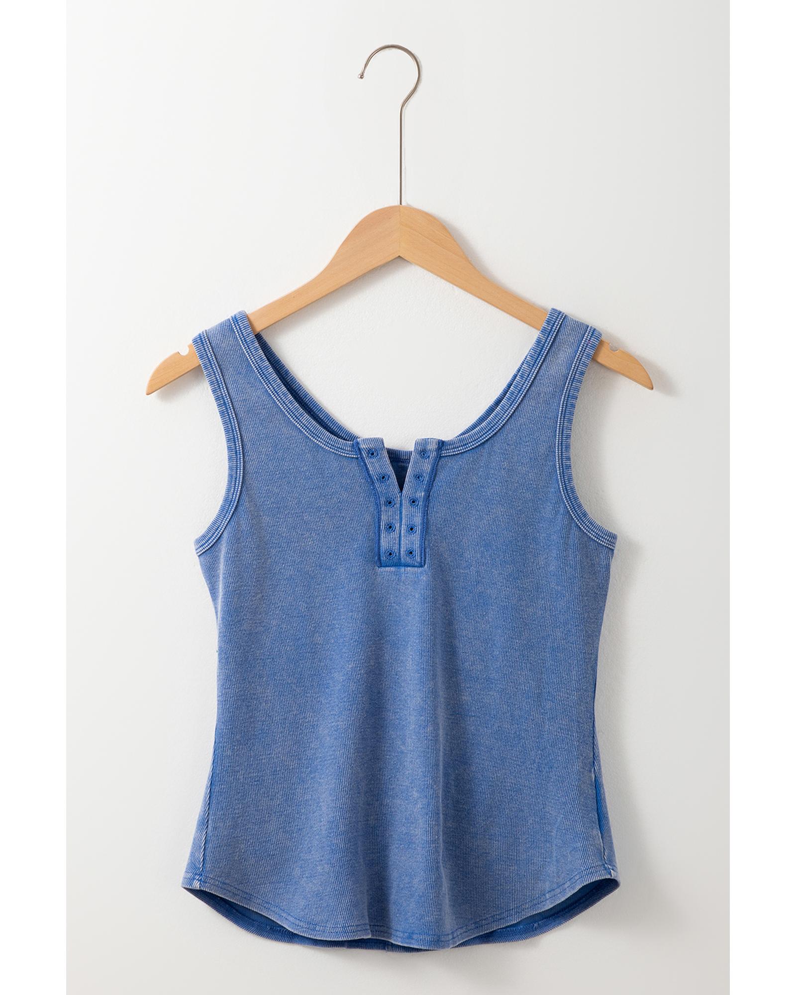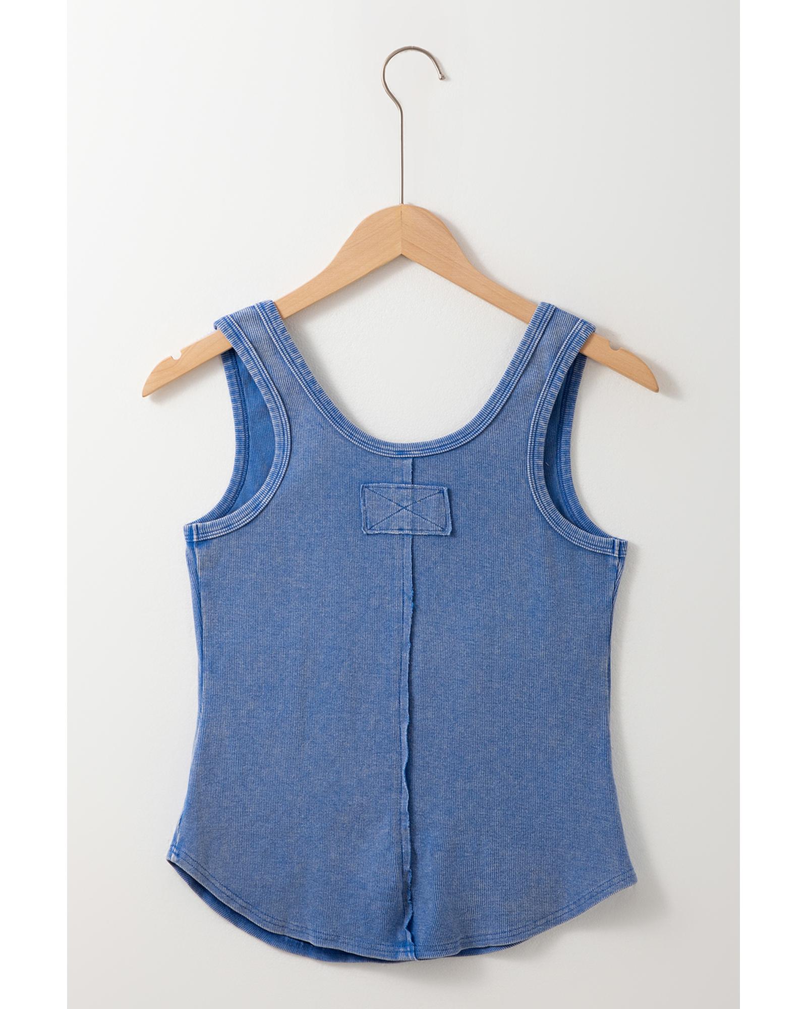 Sky Blue Mineral Wash Ribbed Notch Neck Tank Top – L