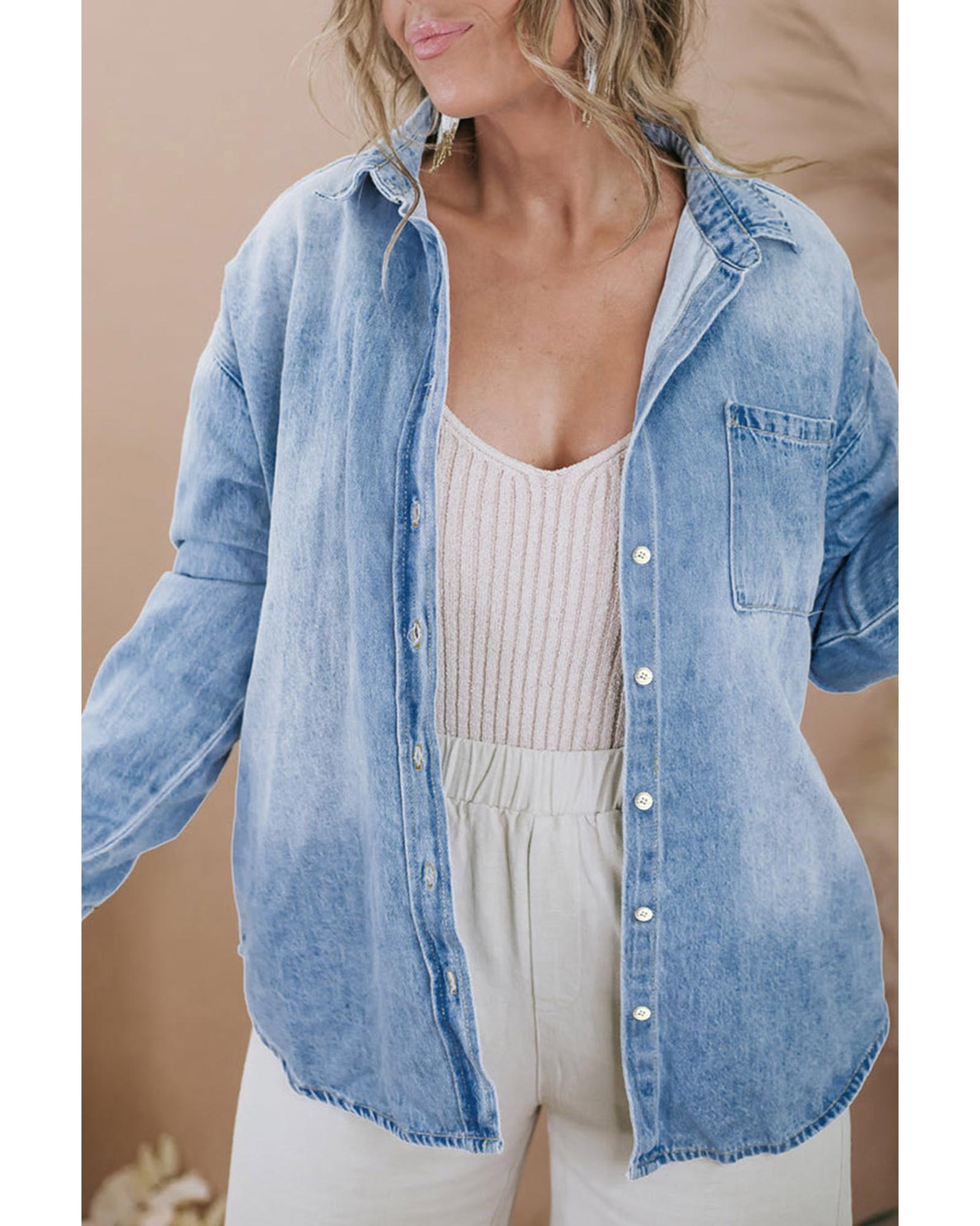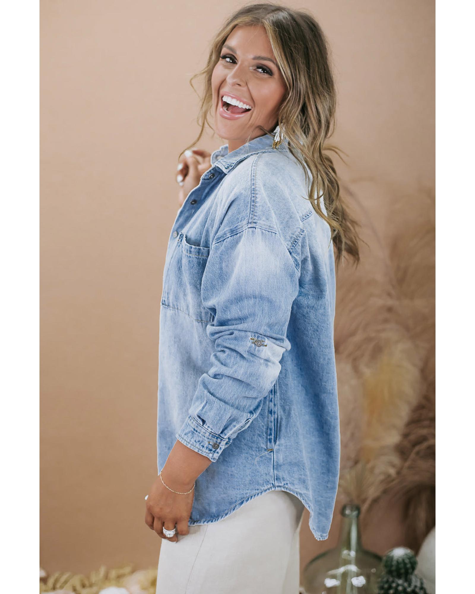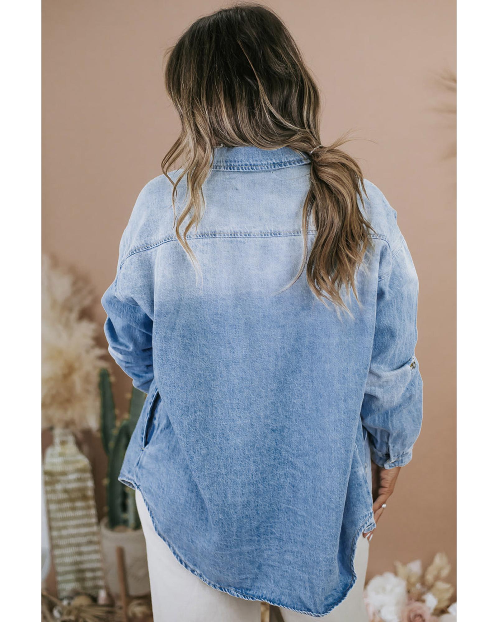 Sky Blue Plus Size Chest Pocket Button-Up Denim Shacket – 1X