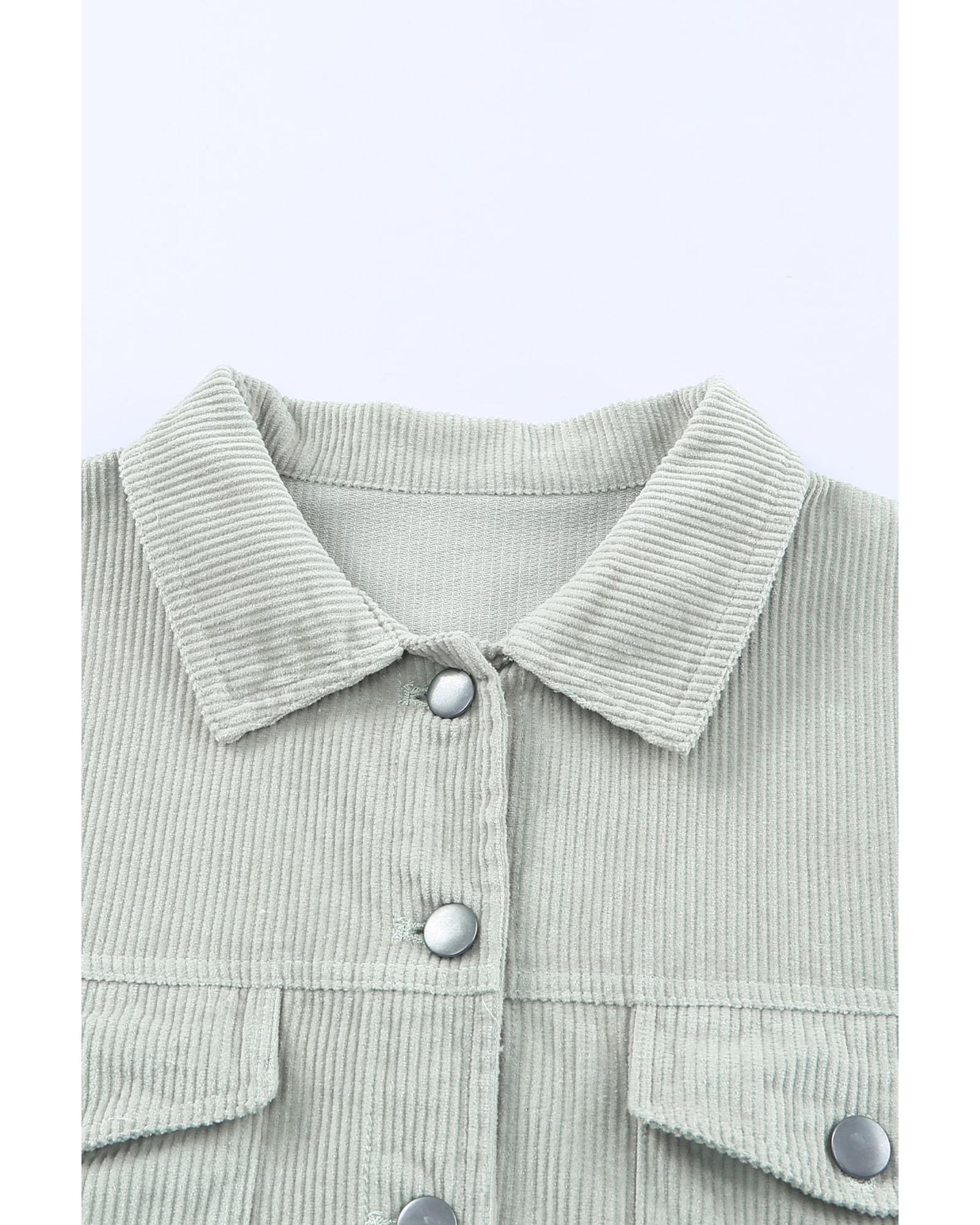 Mist Green Corduroy Fleece Patchwork Buttoned Bomber Jacket - XL Original price was: $87.99.Current price is: $47.99.