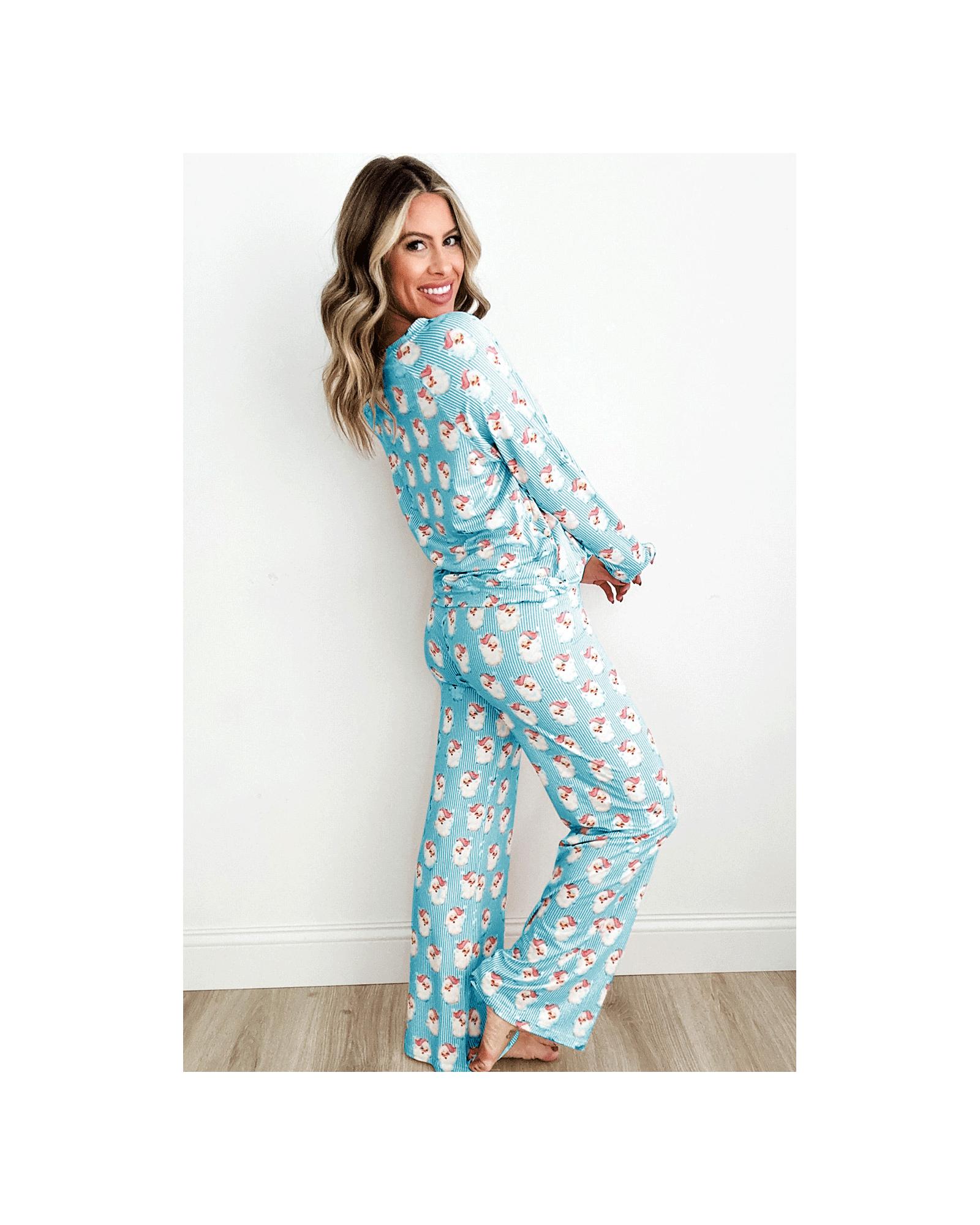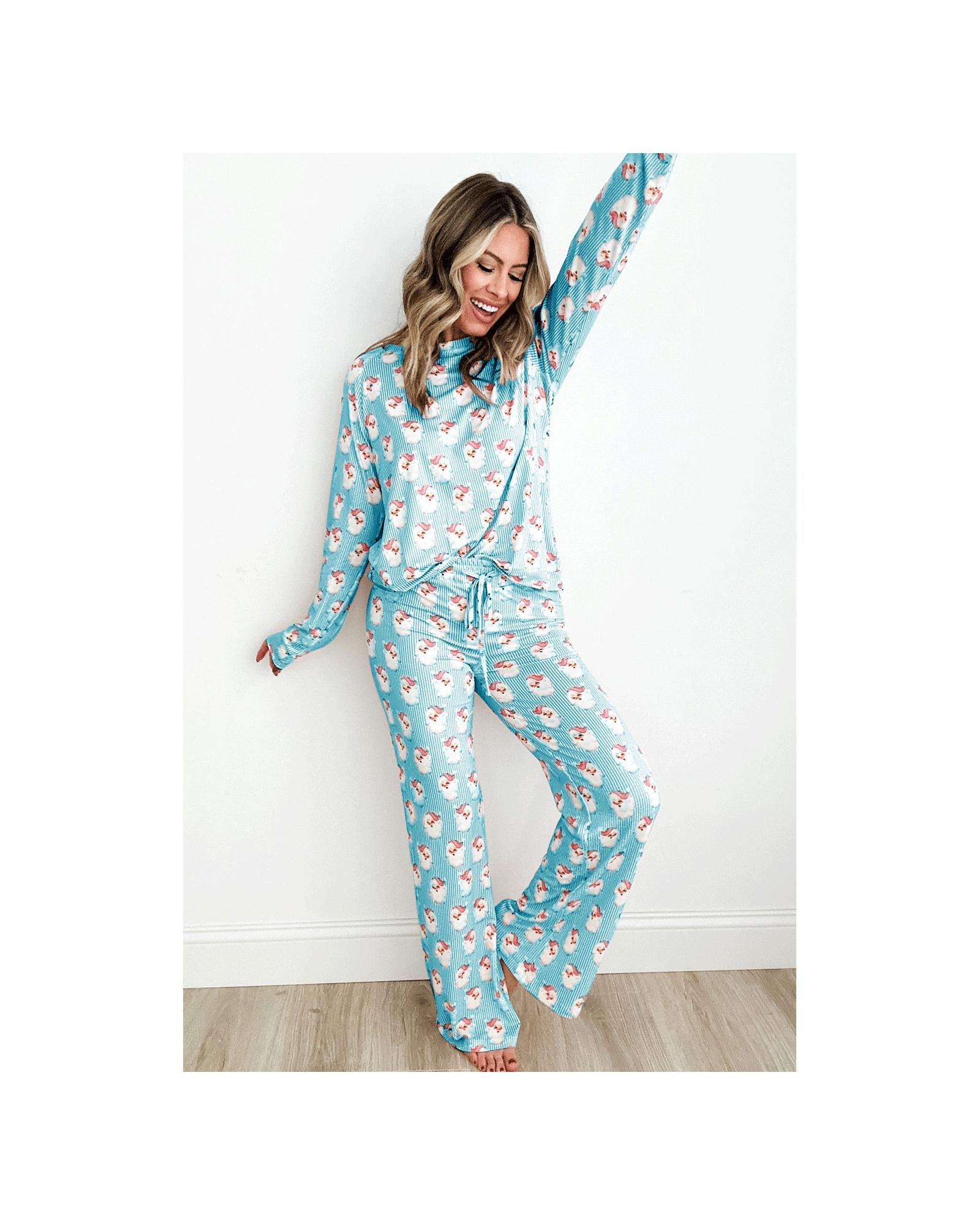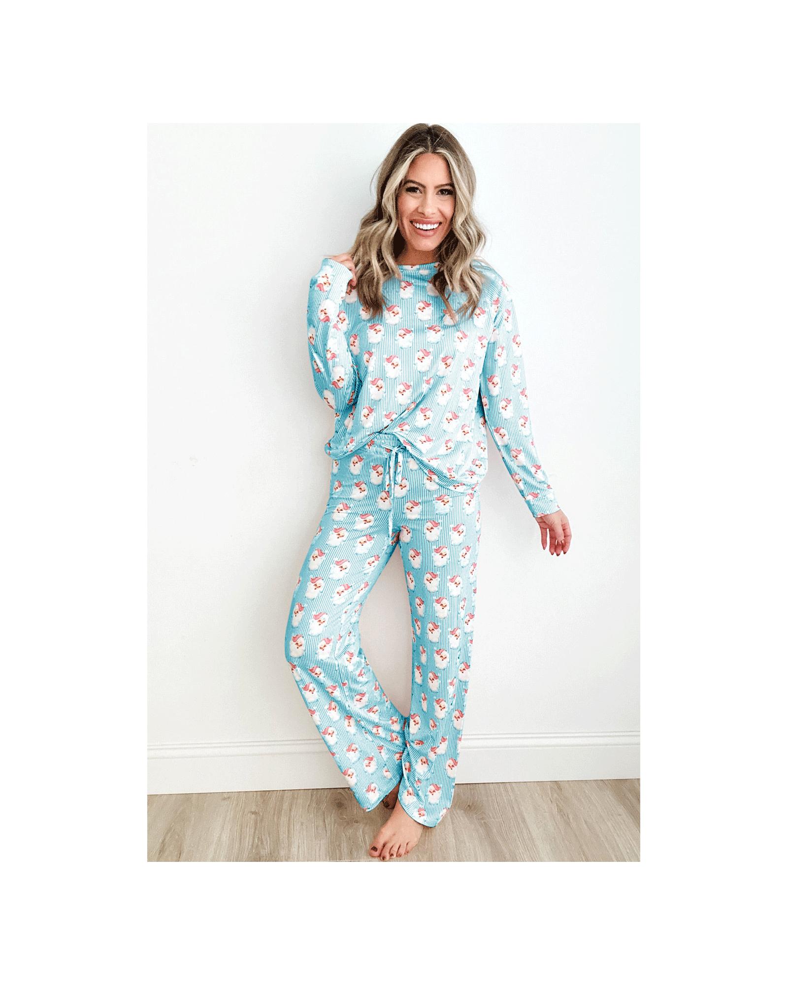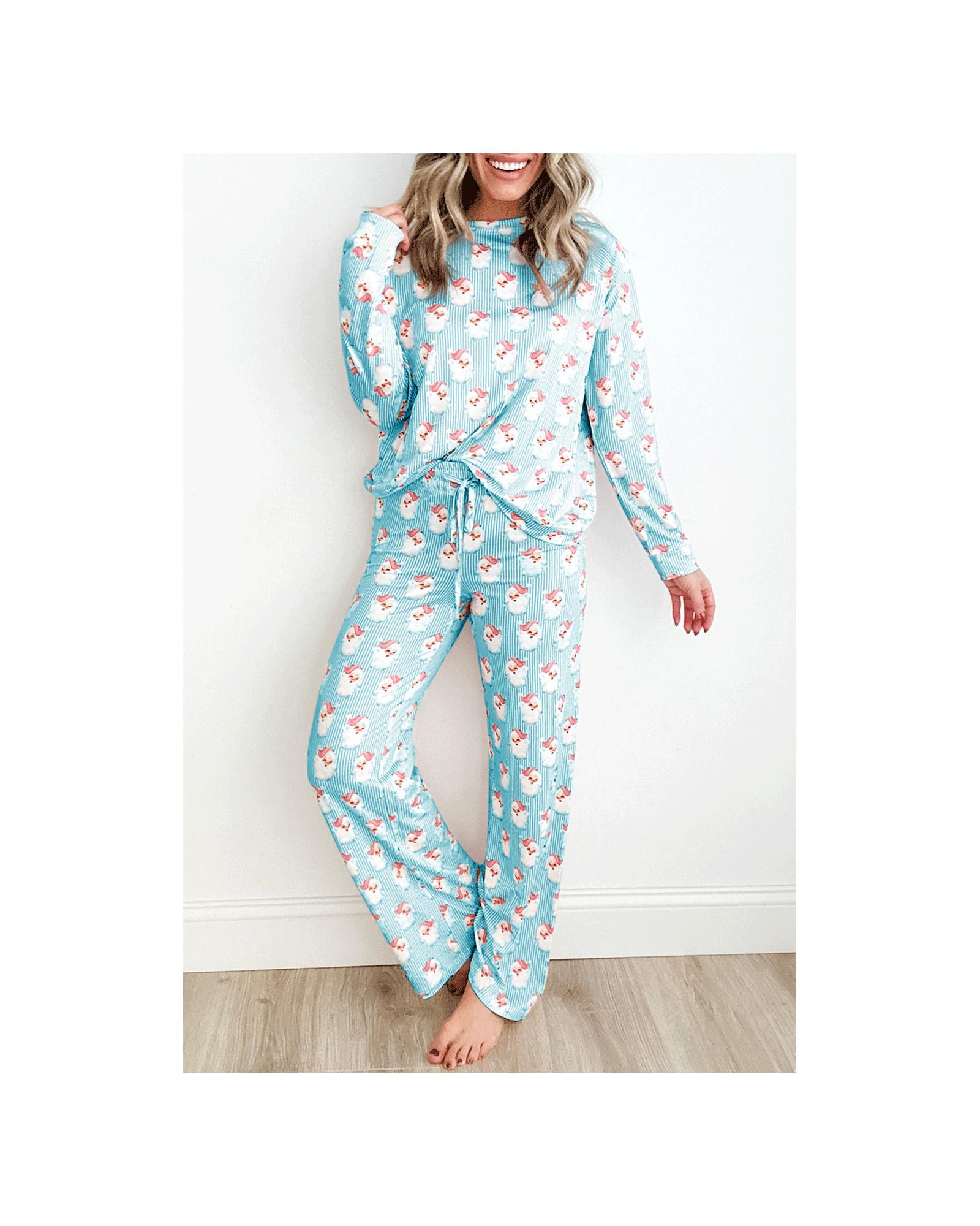Sky Blue Santa Claus Striped Print Loose Fit Two Piece Lounge Set – XL