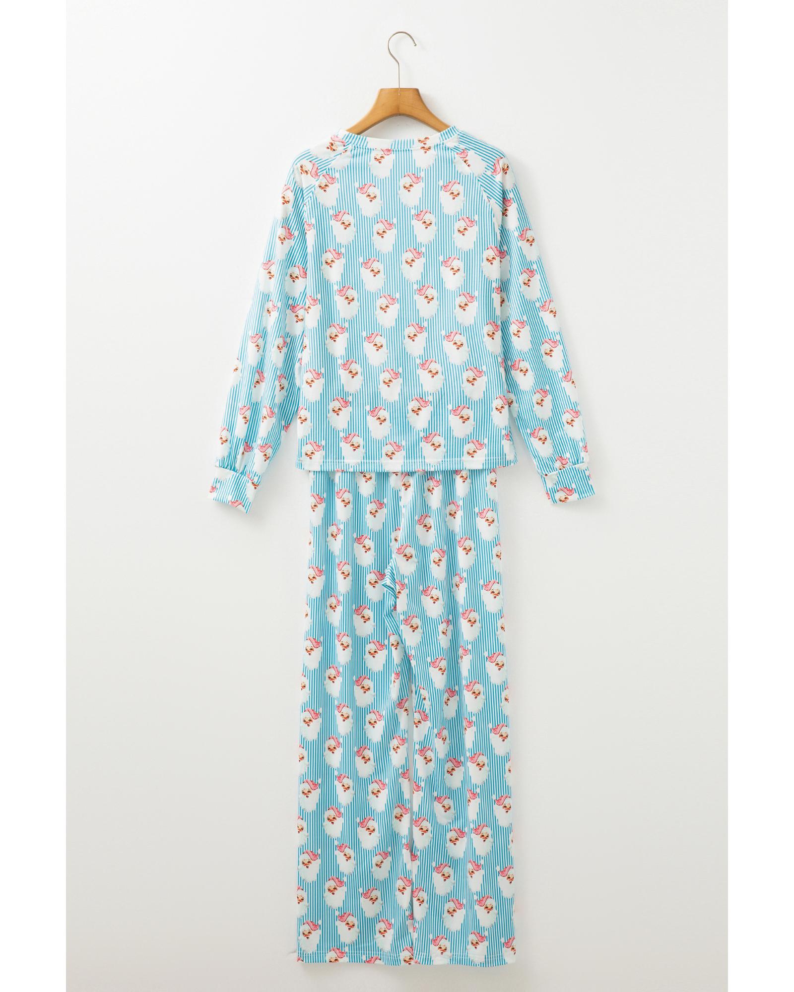 • Sky Blue Santa Claus Striped Print Loose Fit Two Piece Lounge Set
