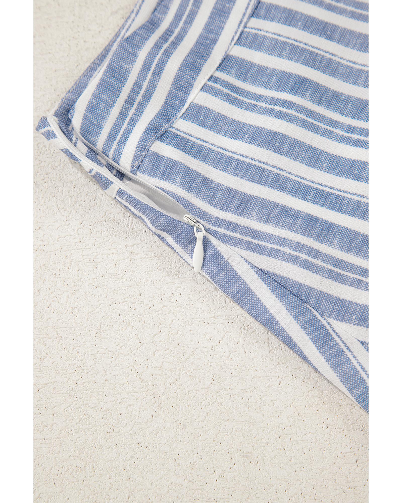 Sky Blue Stripe Buttoned Office Waistcoat Mini Skirt Set – L