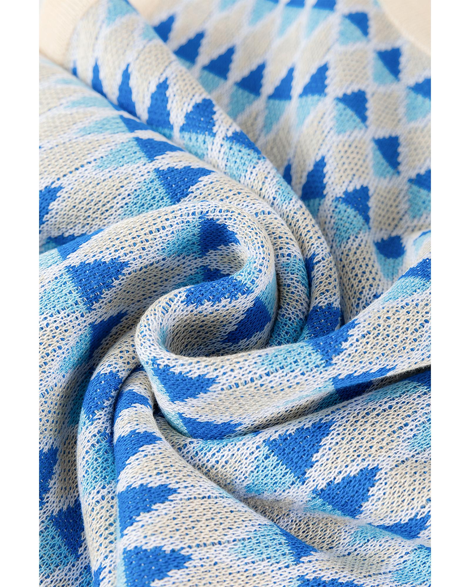 Sky Blue Stripe Geometric Print Round Neck Slim Fit Sweater Vest – L